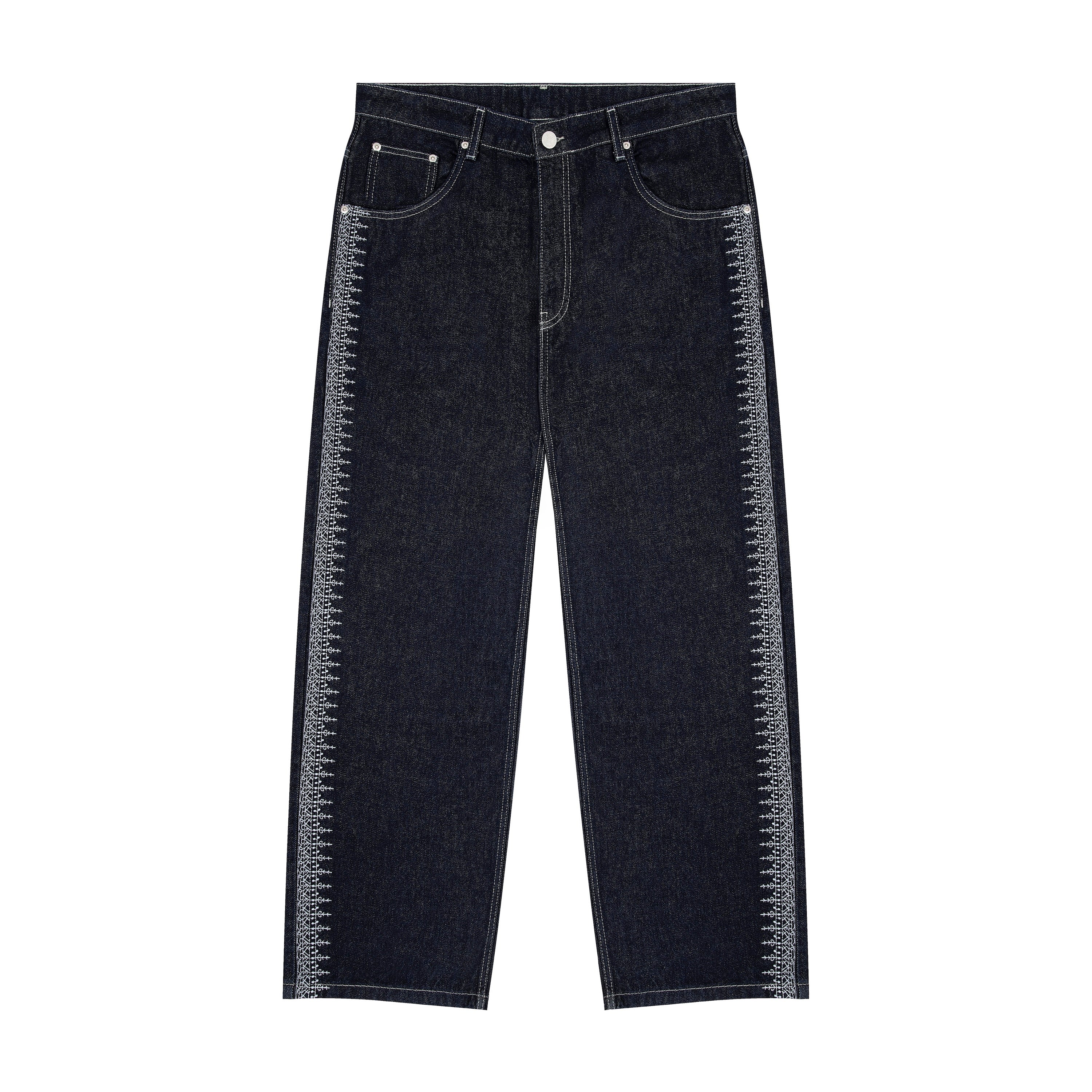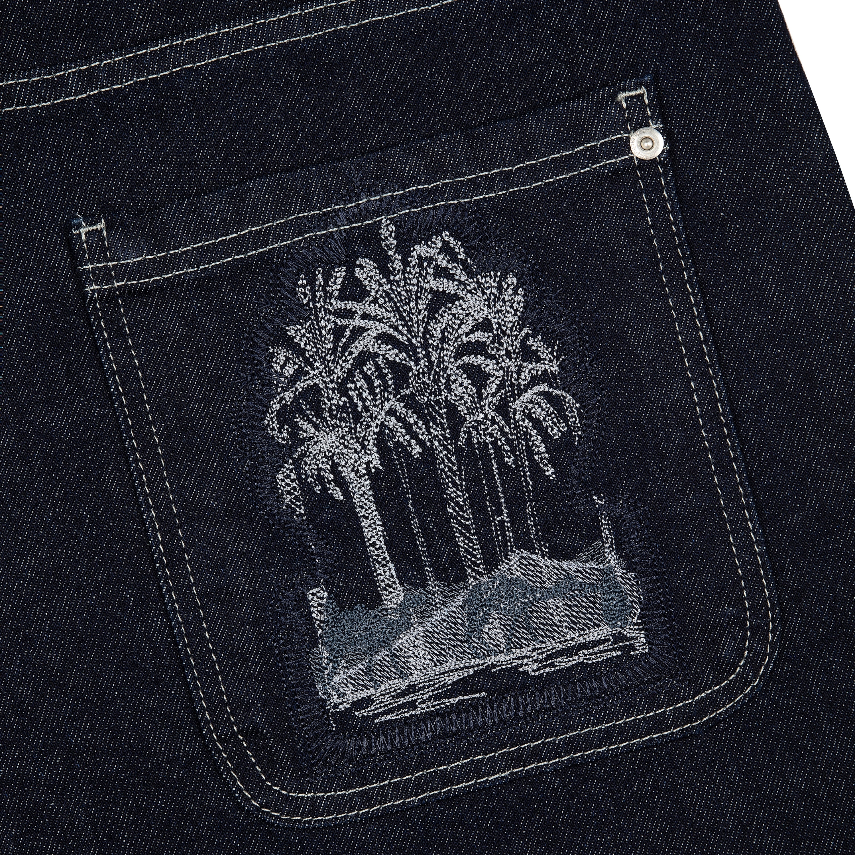 14,5oz denim / 100% cotton / embroidery on sides and back / embroidered leather patch / custom button / wash inside out / fits true to size
