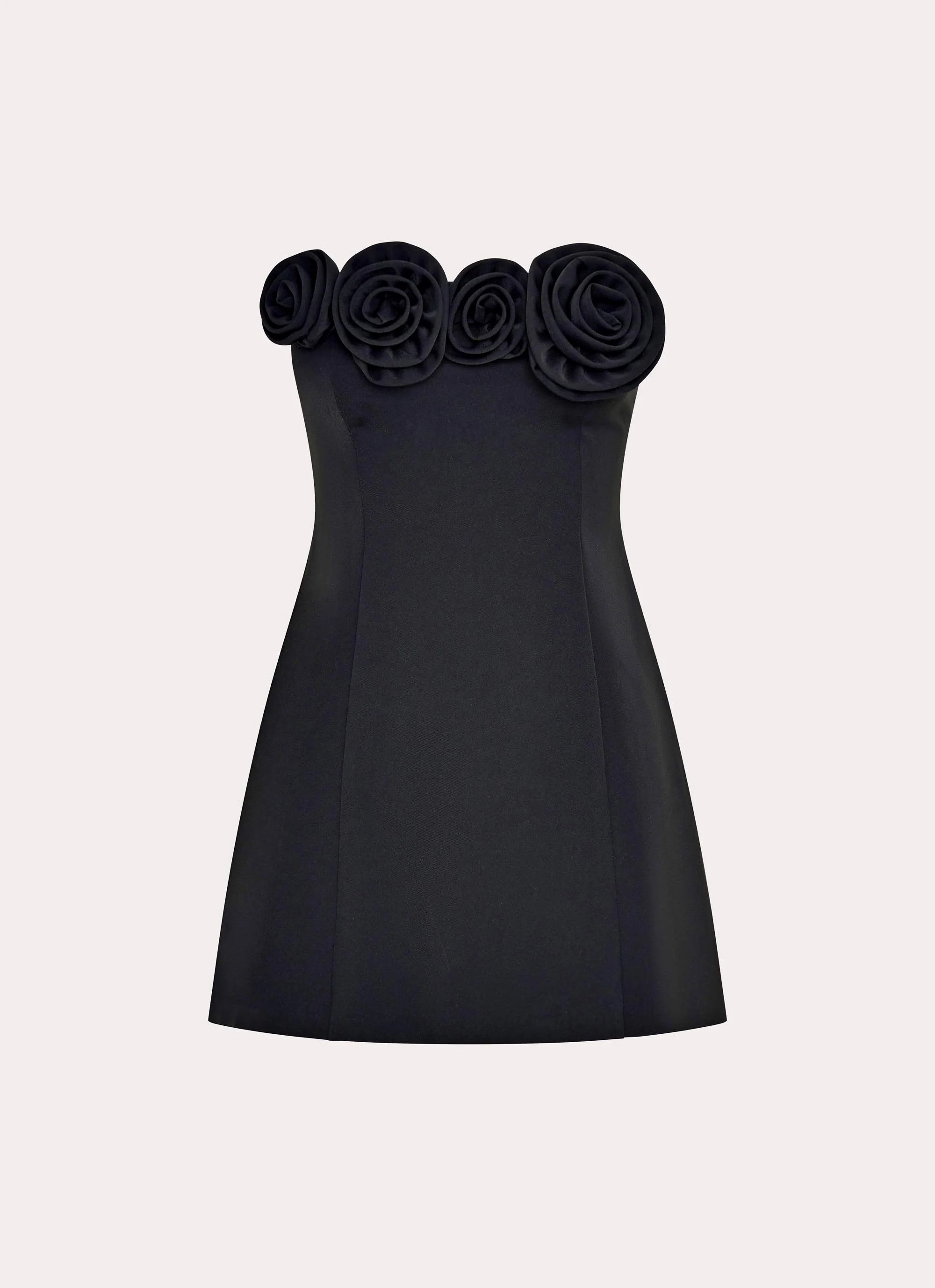 Black 3D Floral Strapless Mini Dress