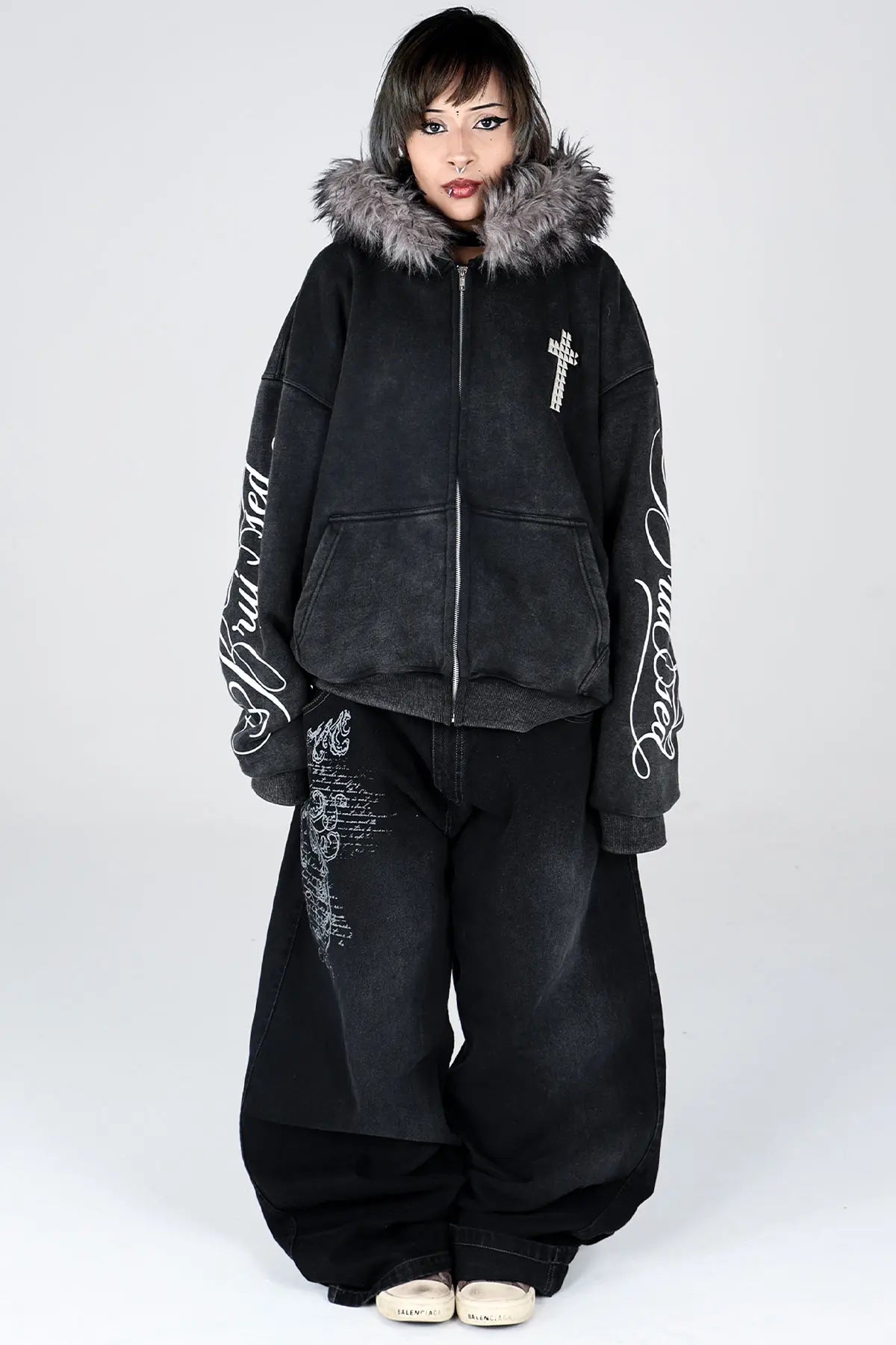 This heavyweight cotton zip-up is made for comfort and durability, with a soft feel that lasts. It features a relaxed fit and detailed screen print built to handle life’s toughest moments. Simple, reliable, and made to help you express your true self, no matter what.e