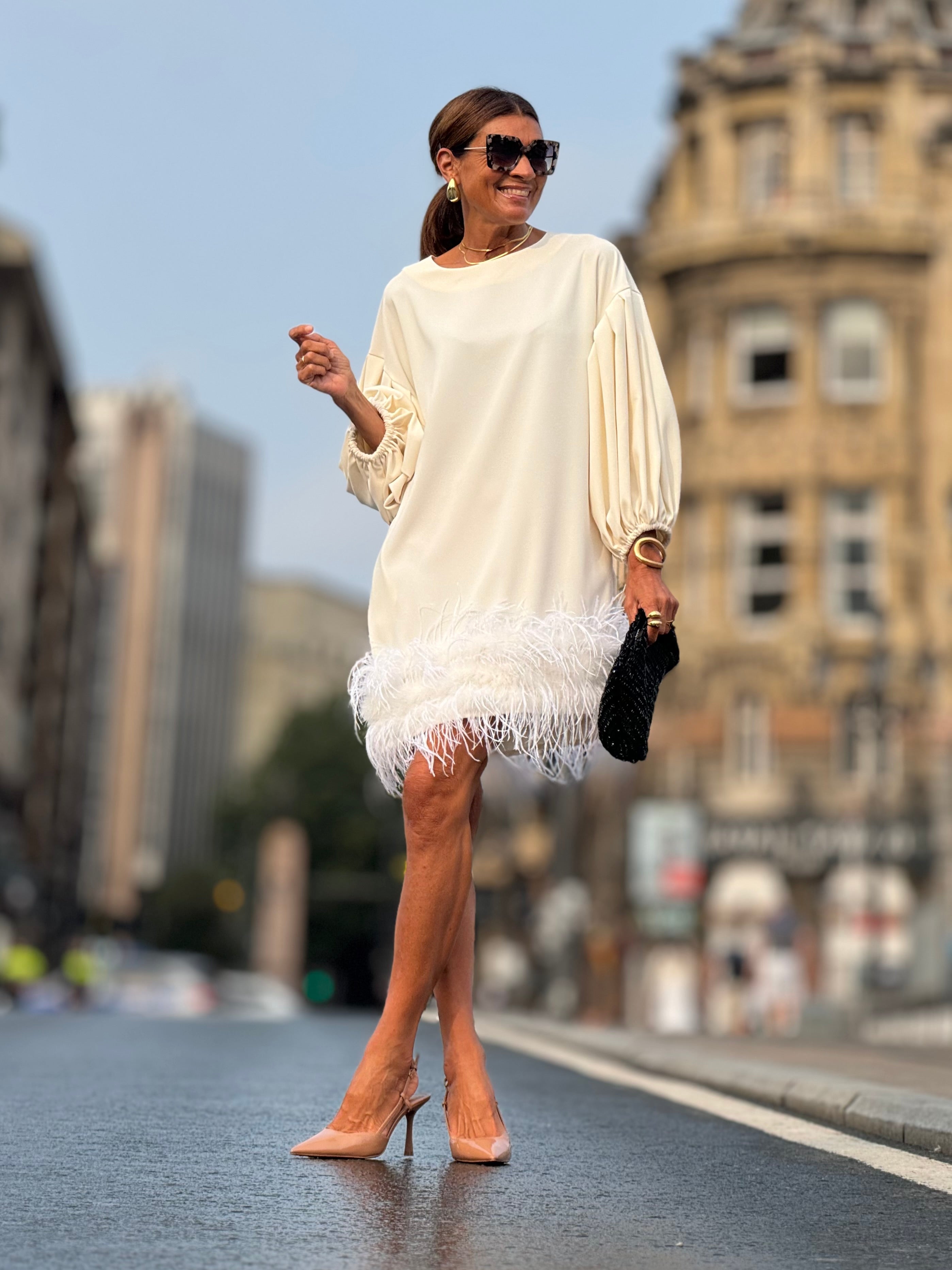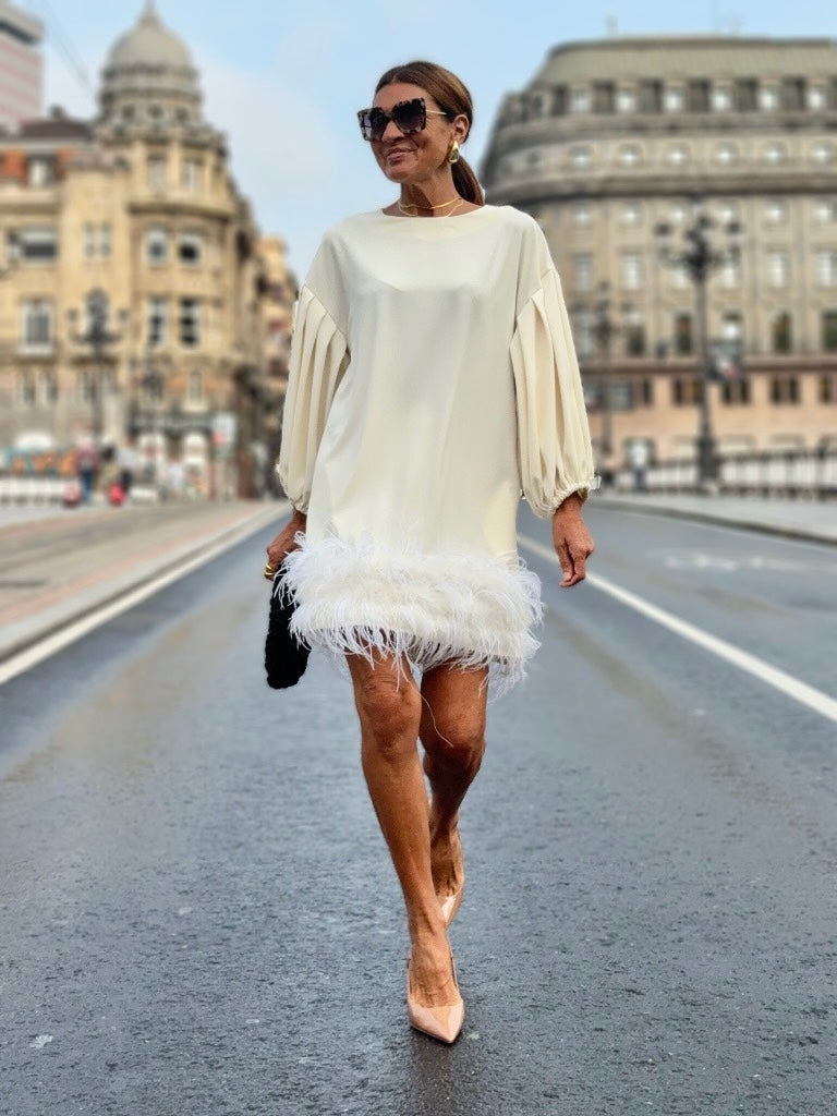 The Marcia White Feather Dress is a stunning and unique piece that will surely turn heads. This high-quality dress features a beautiful feather design, complete with a luxurious black colour for a touch of sophistication. Its relaxed fit ensures maximum comfort, making it perfect for any special occasion, whether it be a fancy event or just to make a statement. Look your best and make an impression with the Marcia Black Feather Dress!