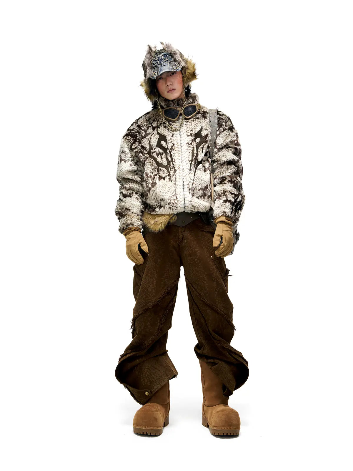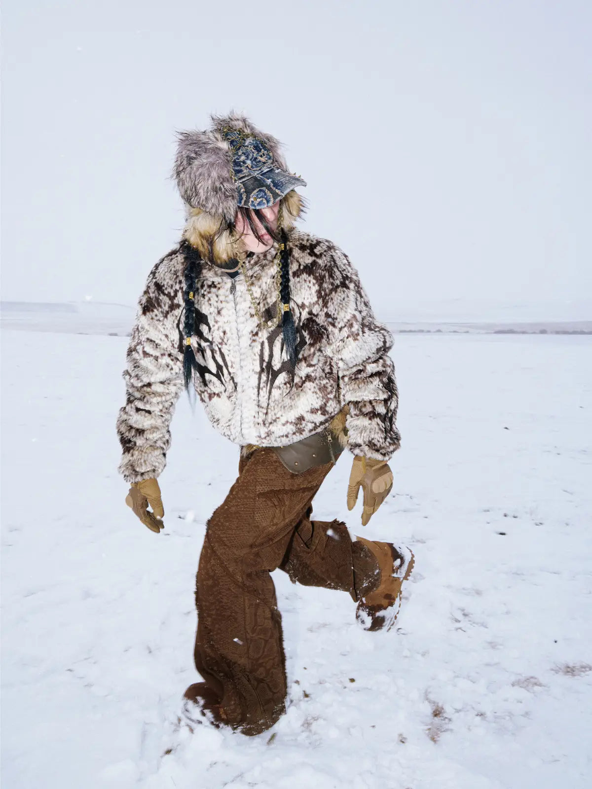 Personsoul Snake Print Faux Fur Jacket