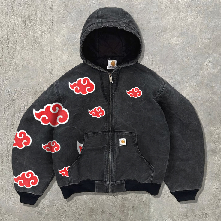 Retro auspicious cloud pattern long sleeve zip-up jacket