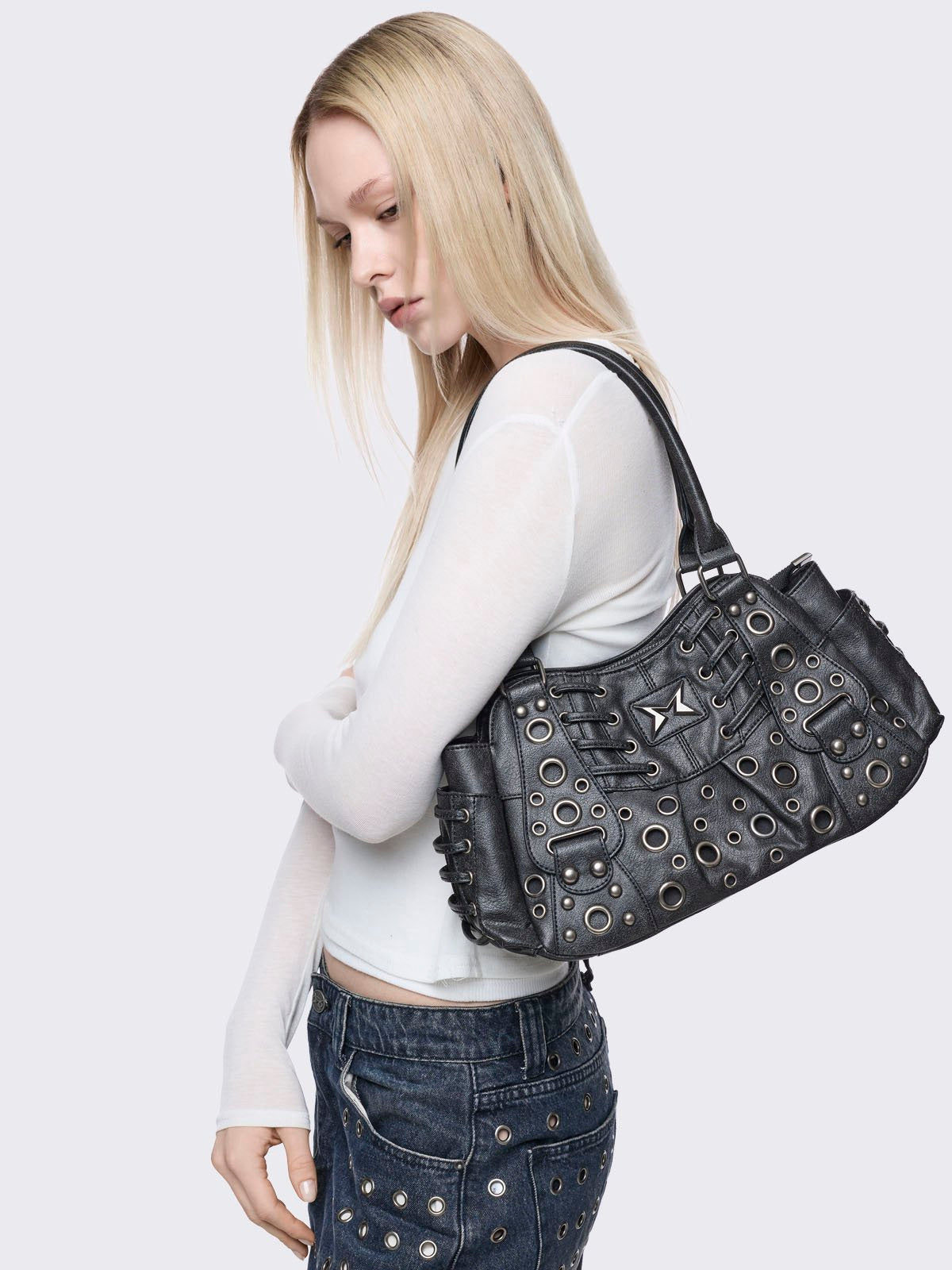 Rivet Vegan Leather Shoulder Bag