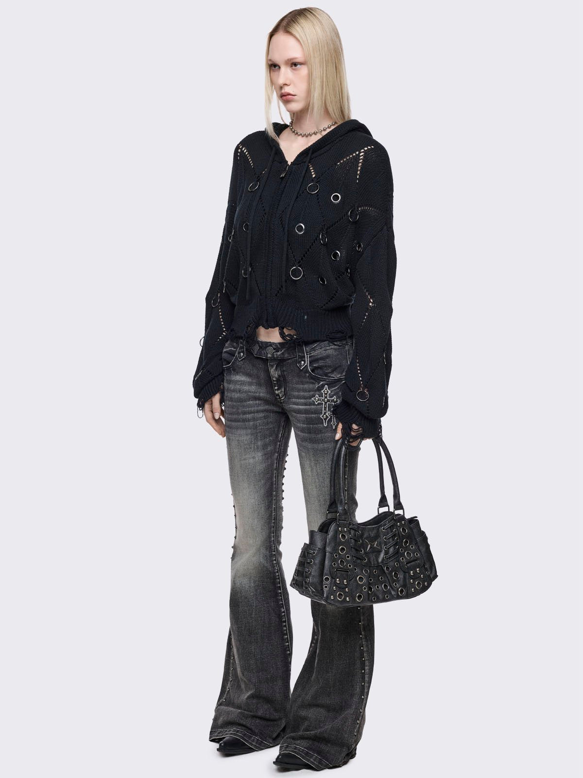 - Silver eyelets