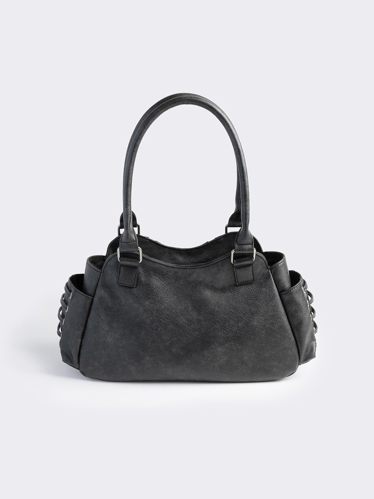 - Black faux leather shoulder bag
