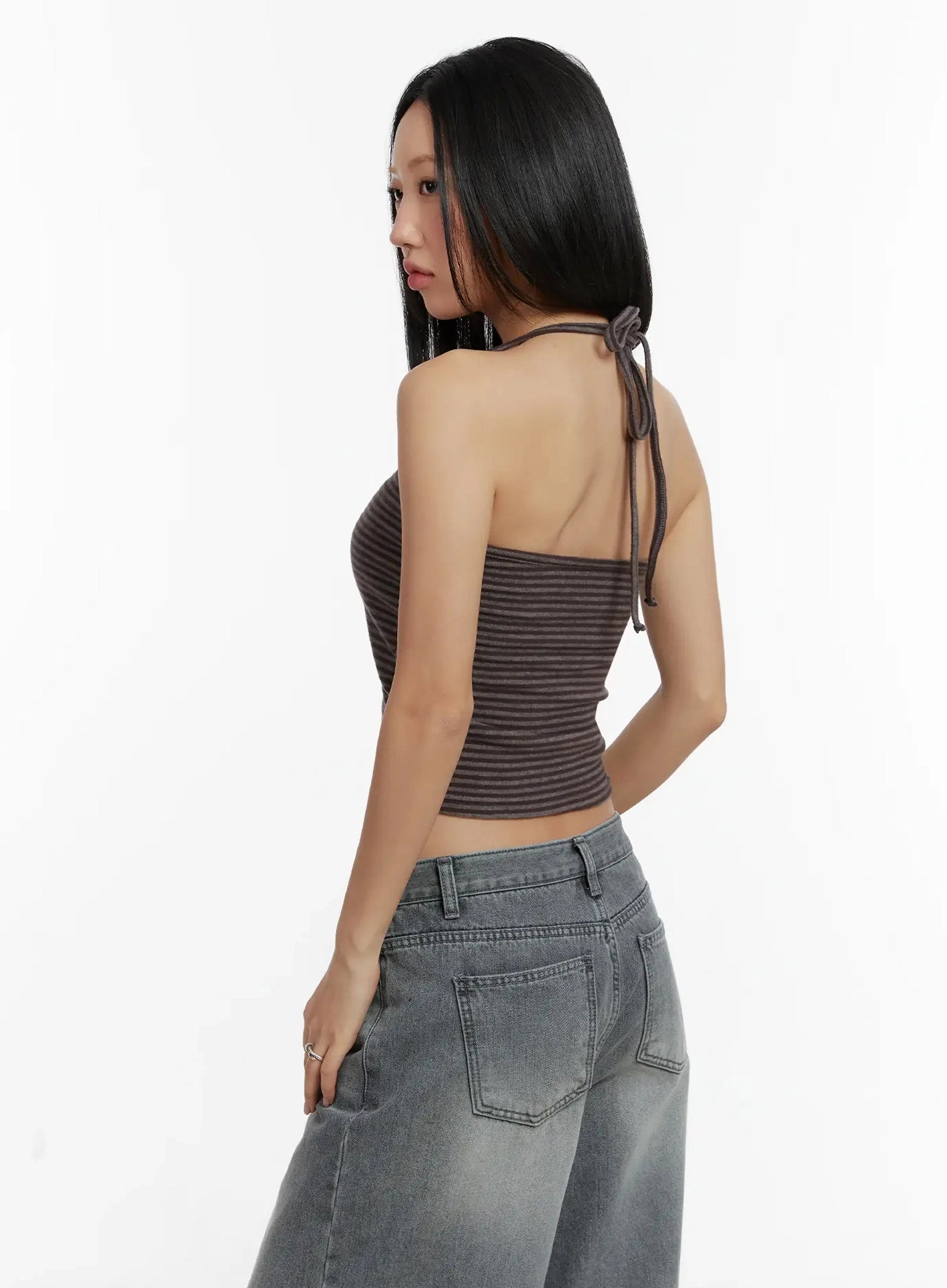 Striped Halter Neck Tank Top ID526