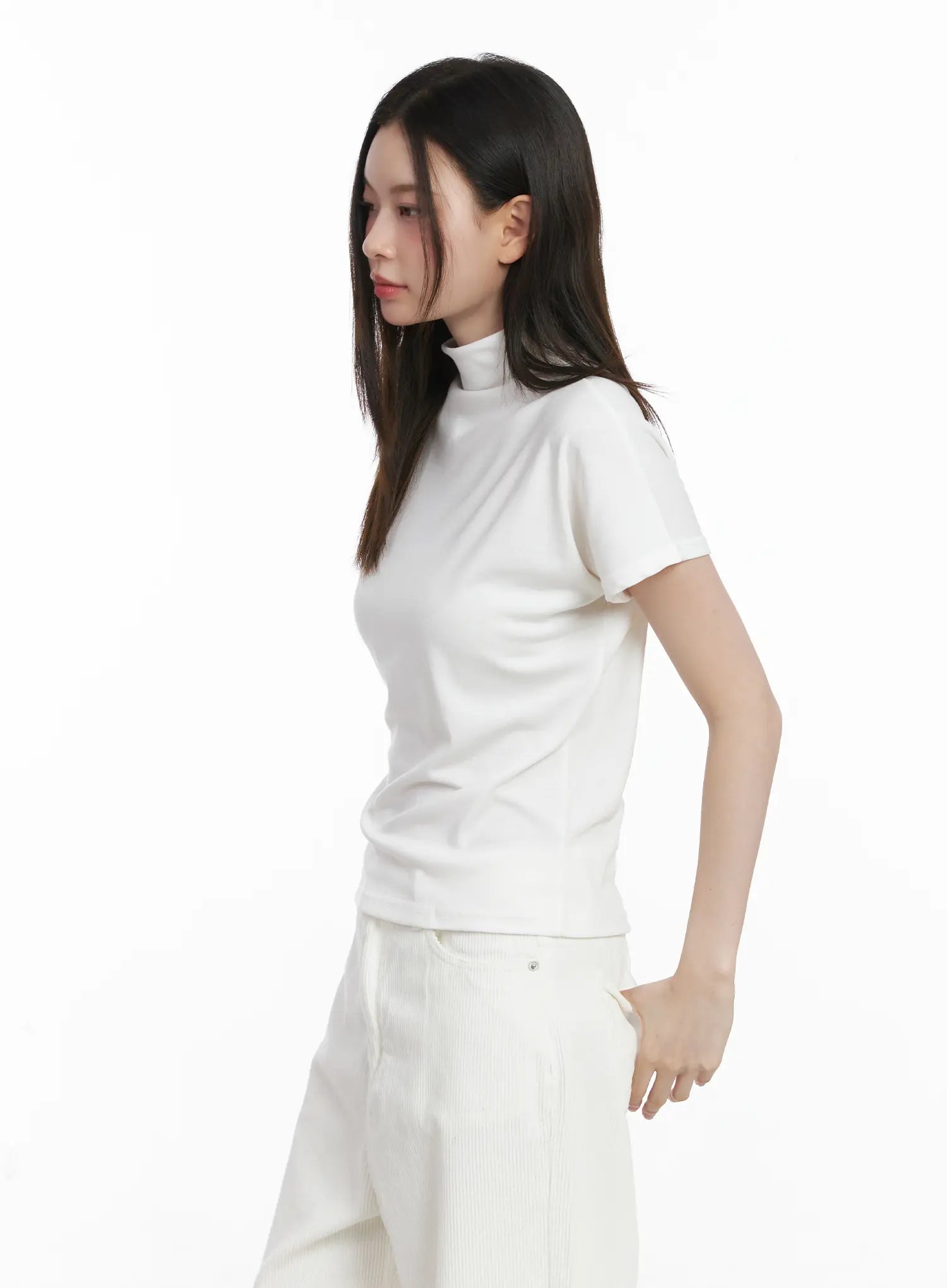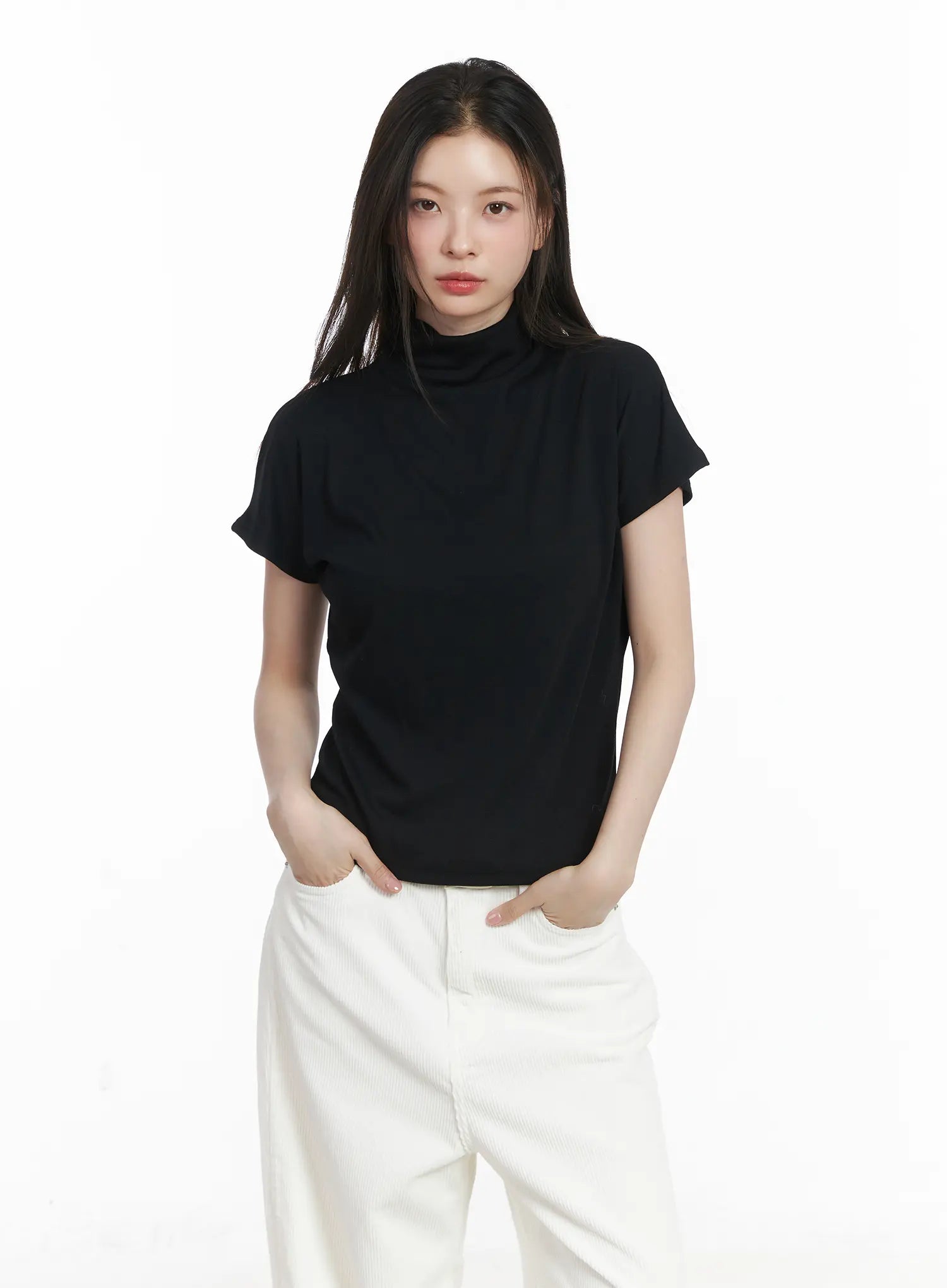 Basic Mock Neck Short Sleeve Top CJ507