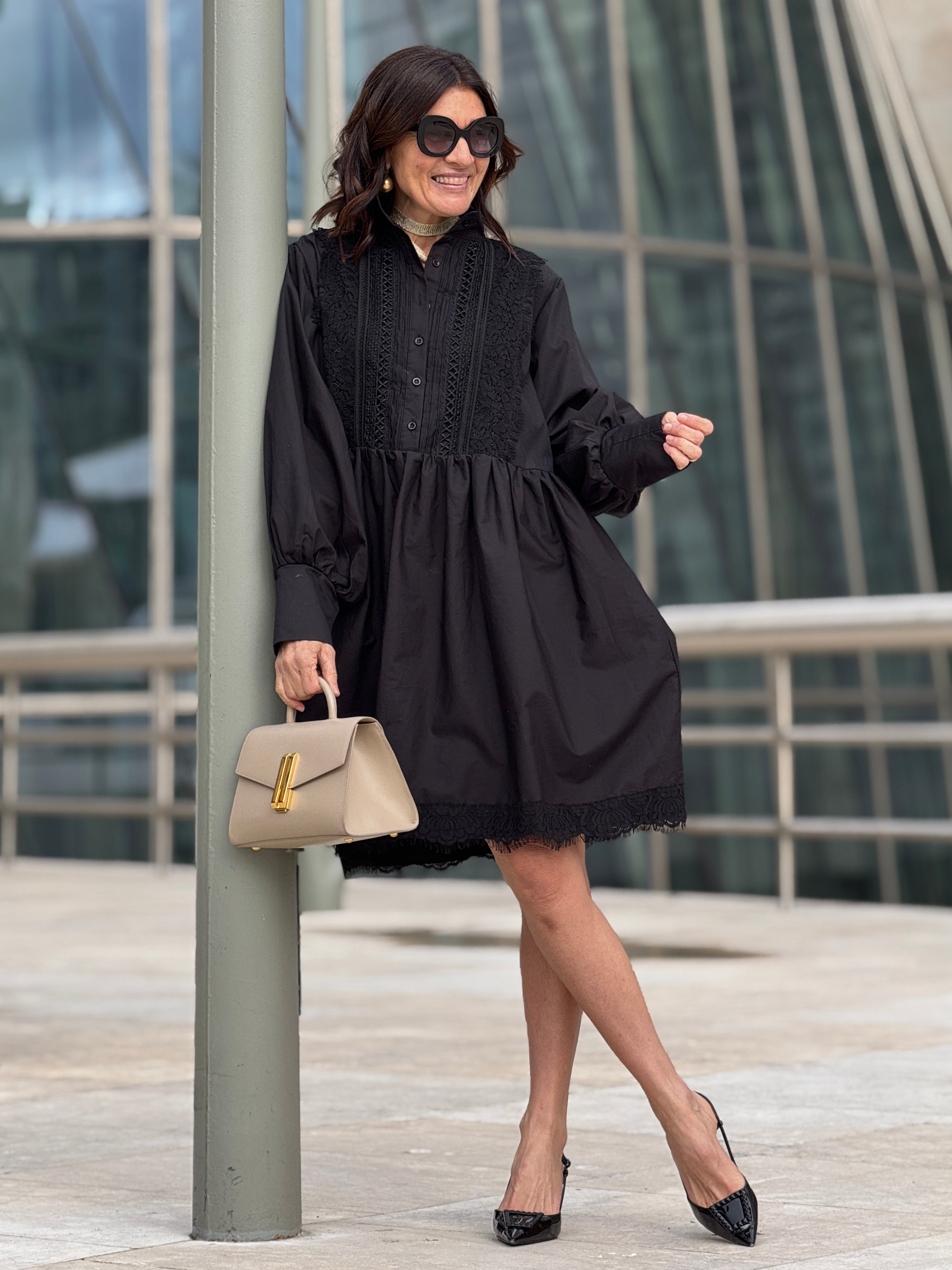 Introducing the Dress Nora Black, made of 100% Egyptian Cotton lace—a masterfully crafted piece that seamlessly bridges your daytime and evening looks. Featuring discreet side pockets and an elegant silhouette, this design from Marielle Stokkelaar embodies refined simplicity. The versatile size flatters a range of silhouettes while maintaining an understated elegance that works across seasons.