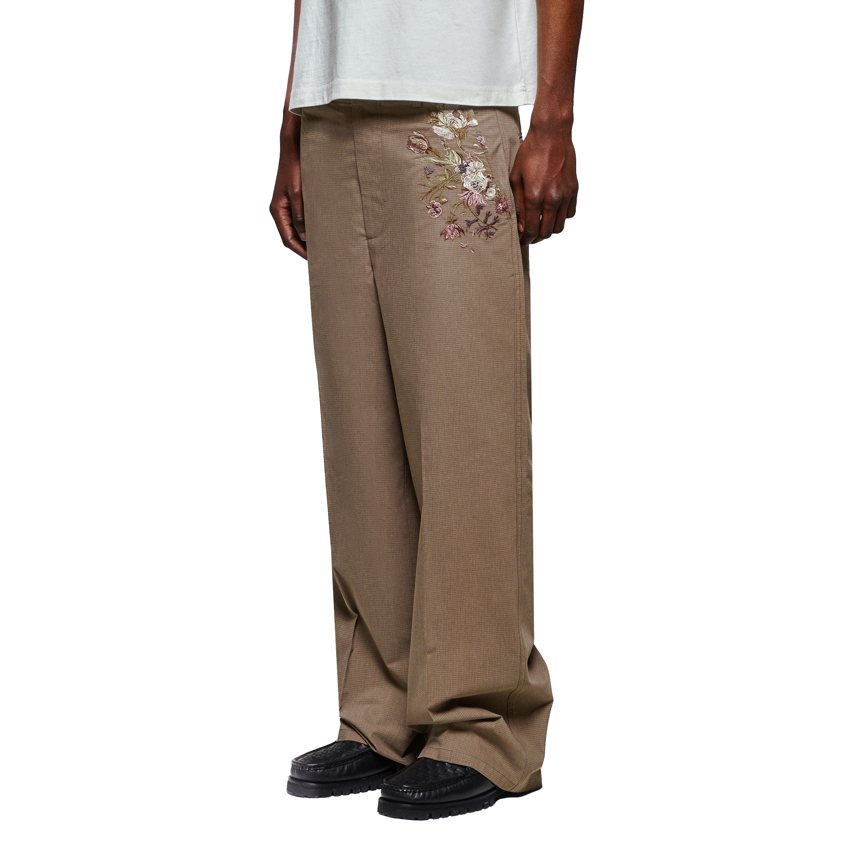 190 gsm plaid patterned gabardine / 73% cotton 25% polyester 2% lycra / embroidery on front / custom buttons / straight fit / fits true to size