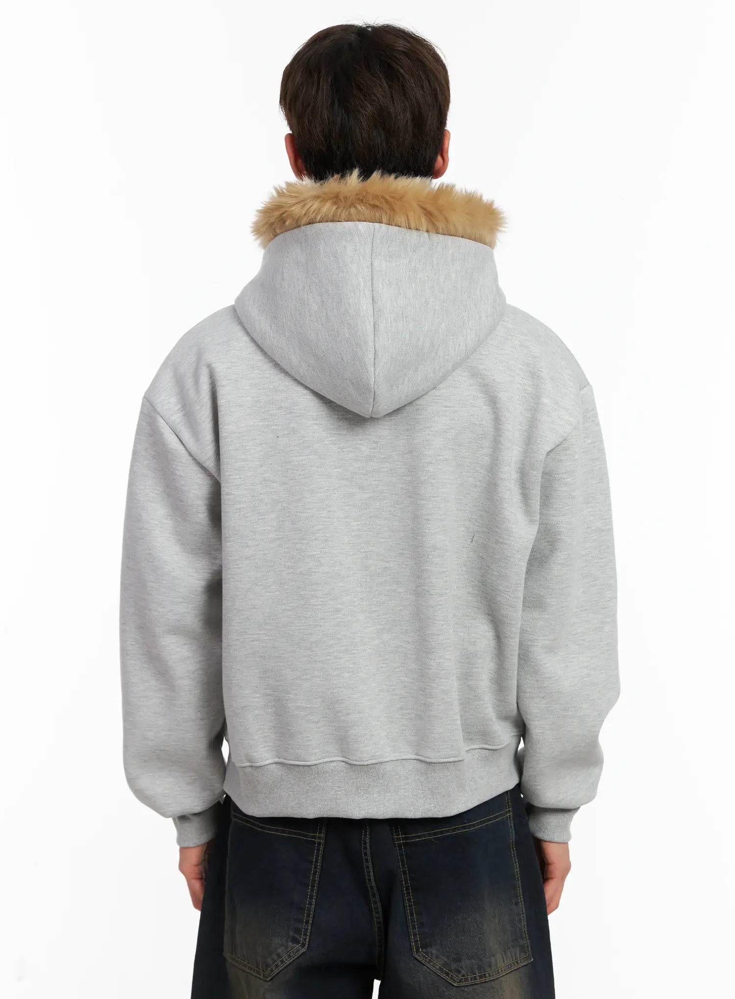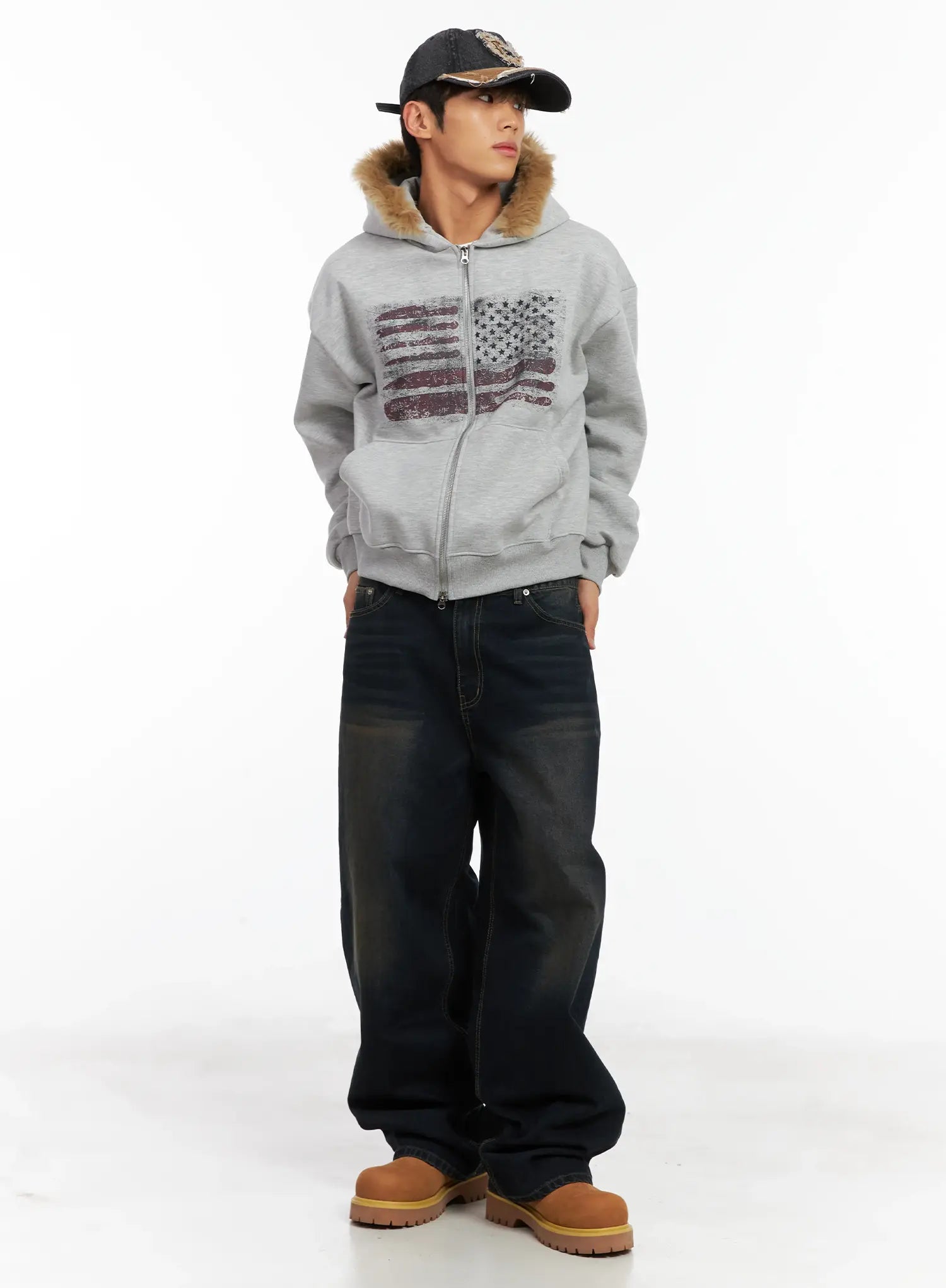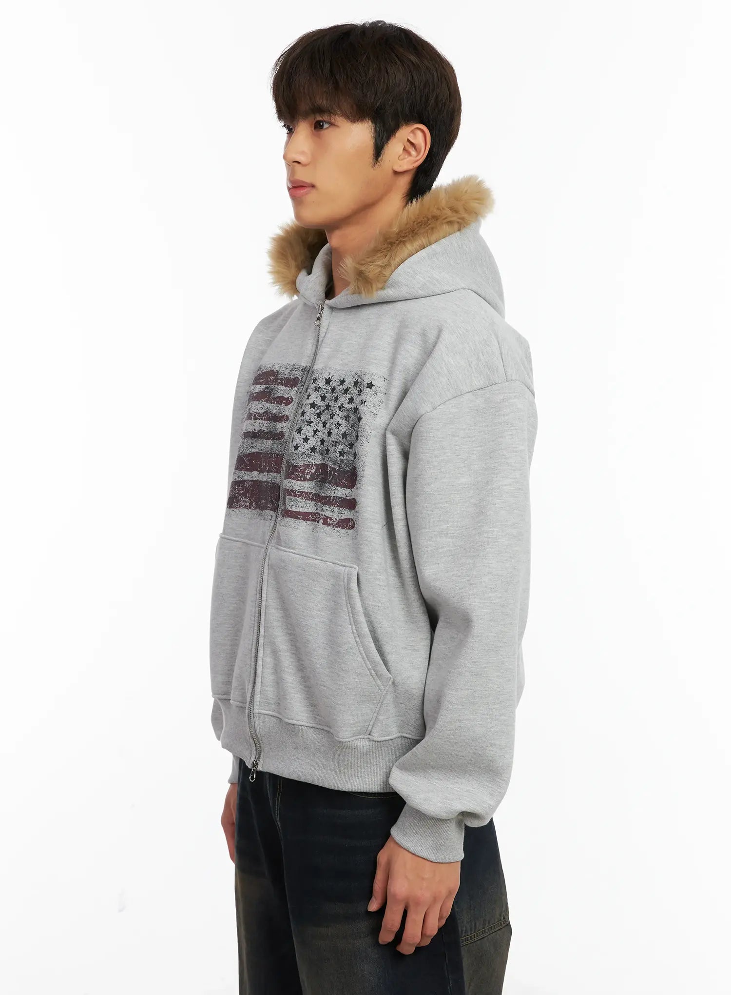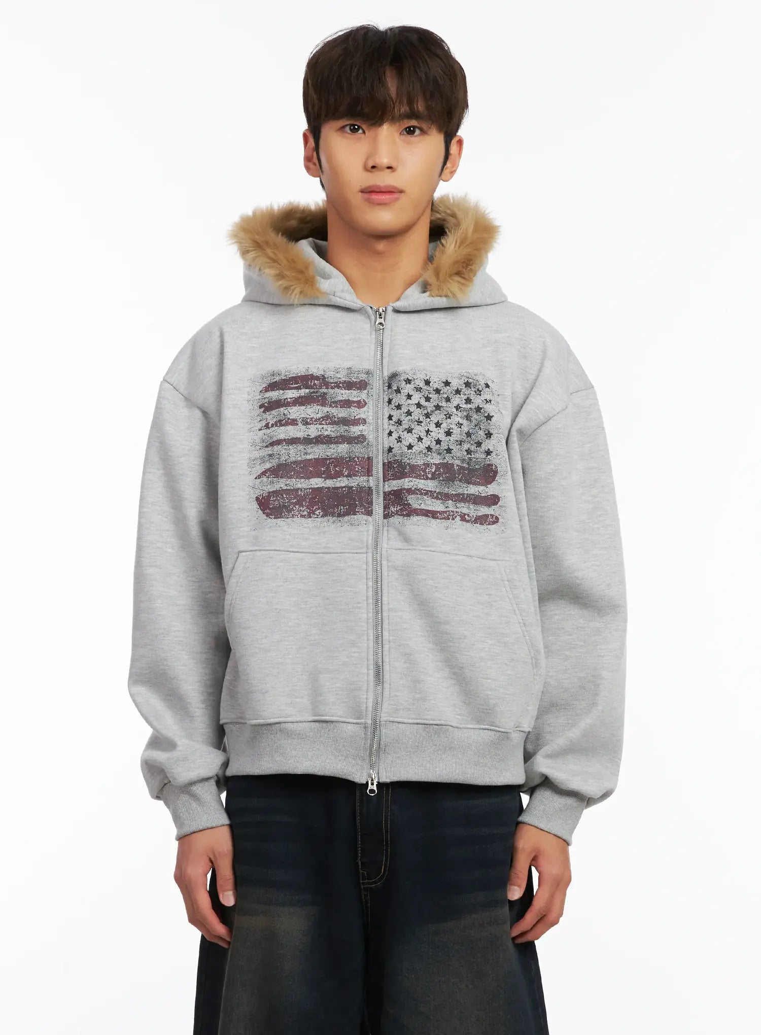 Men's Flag Graphic Fur Zip-Up Hoodie ID511
