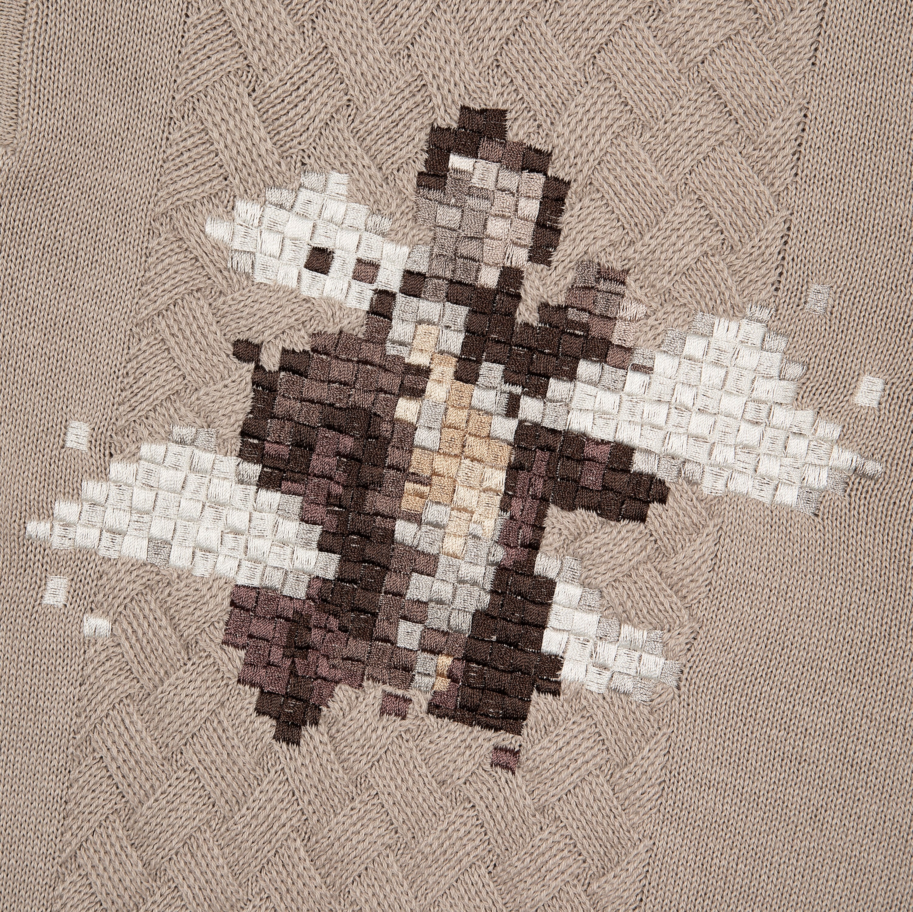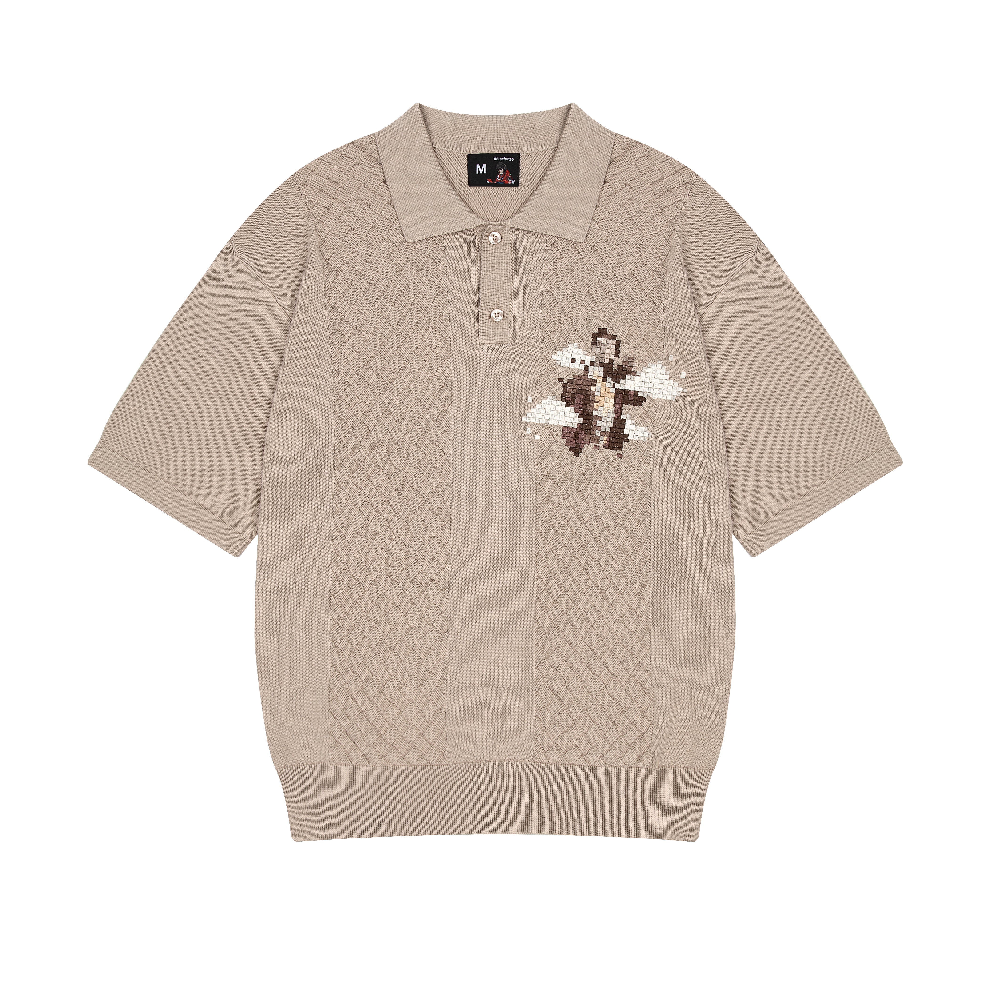 100% cotton / basket weave knit / embroidery on front / custom buttons / fits true to size