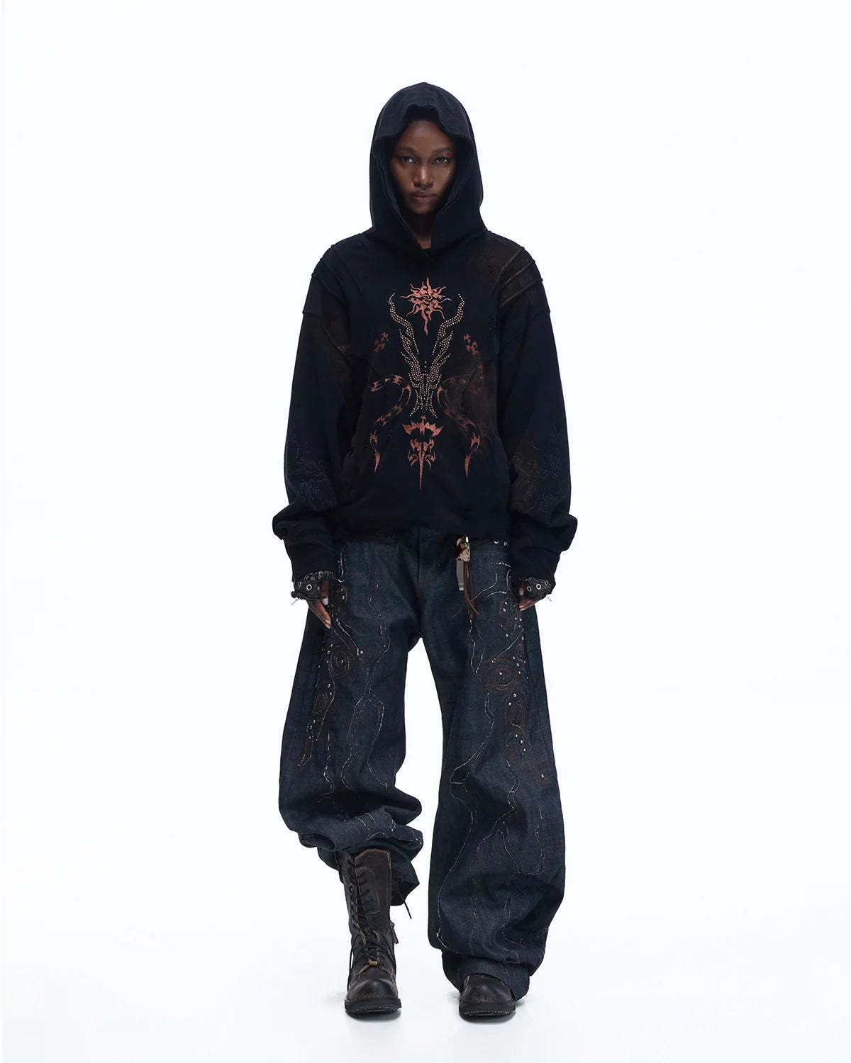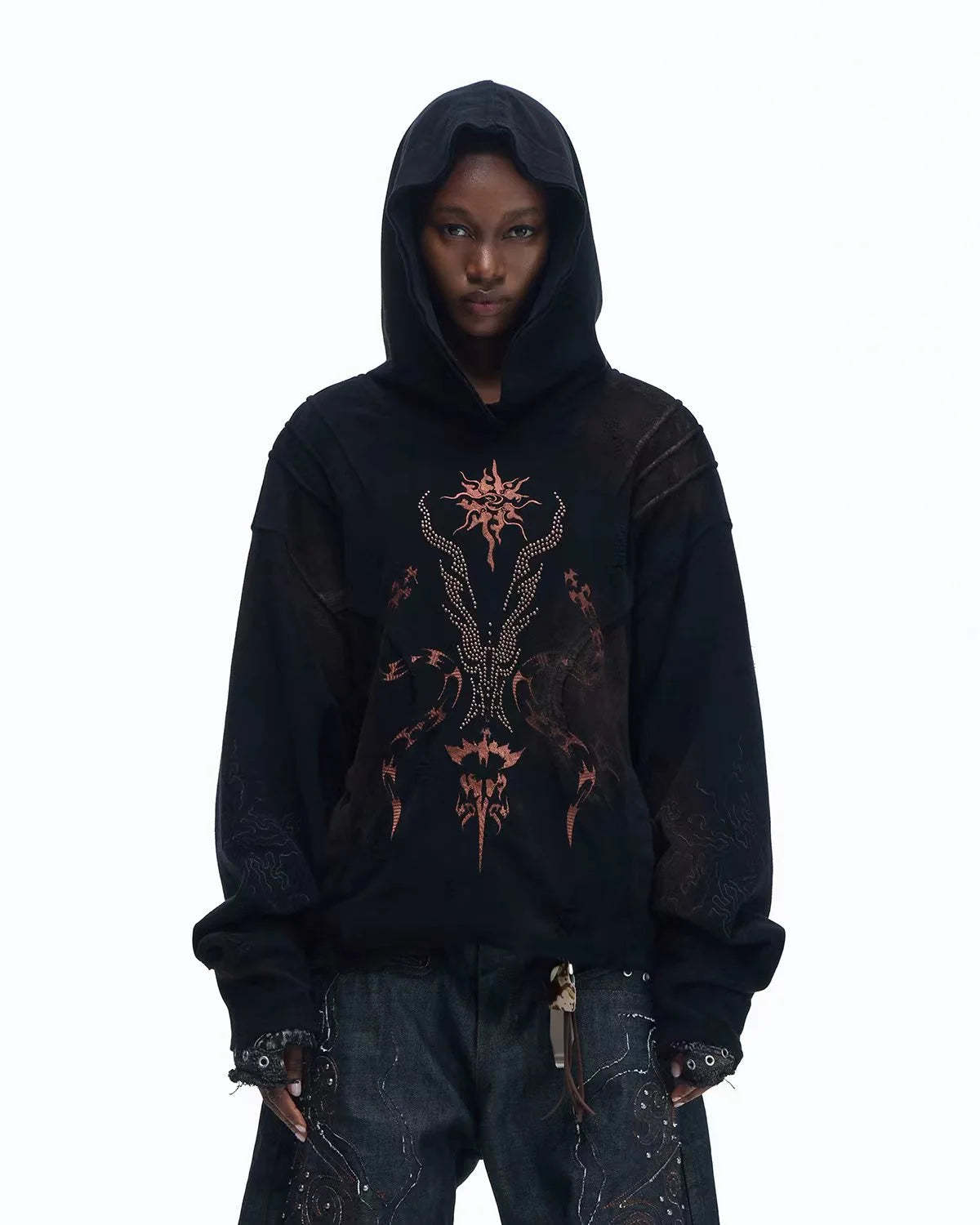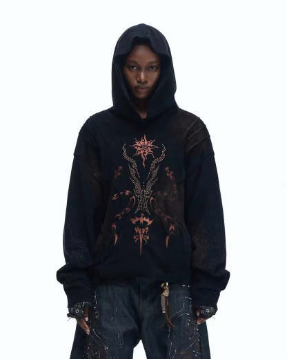 Personsoul Rhinestone Embroidered Hoodie In Black