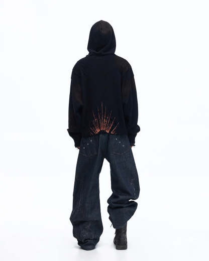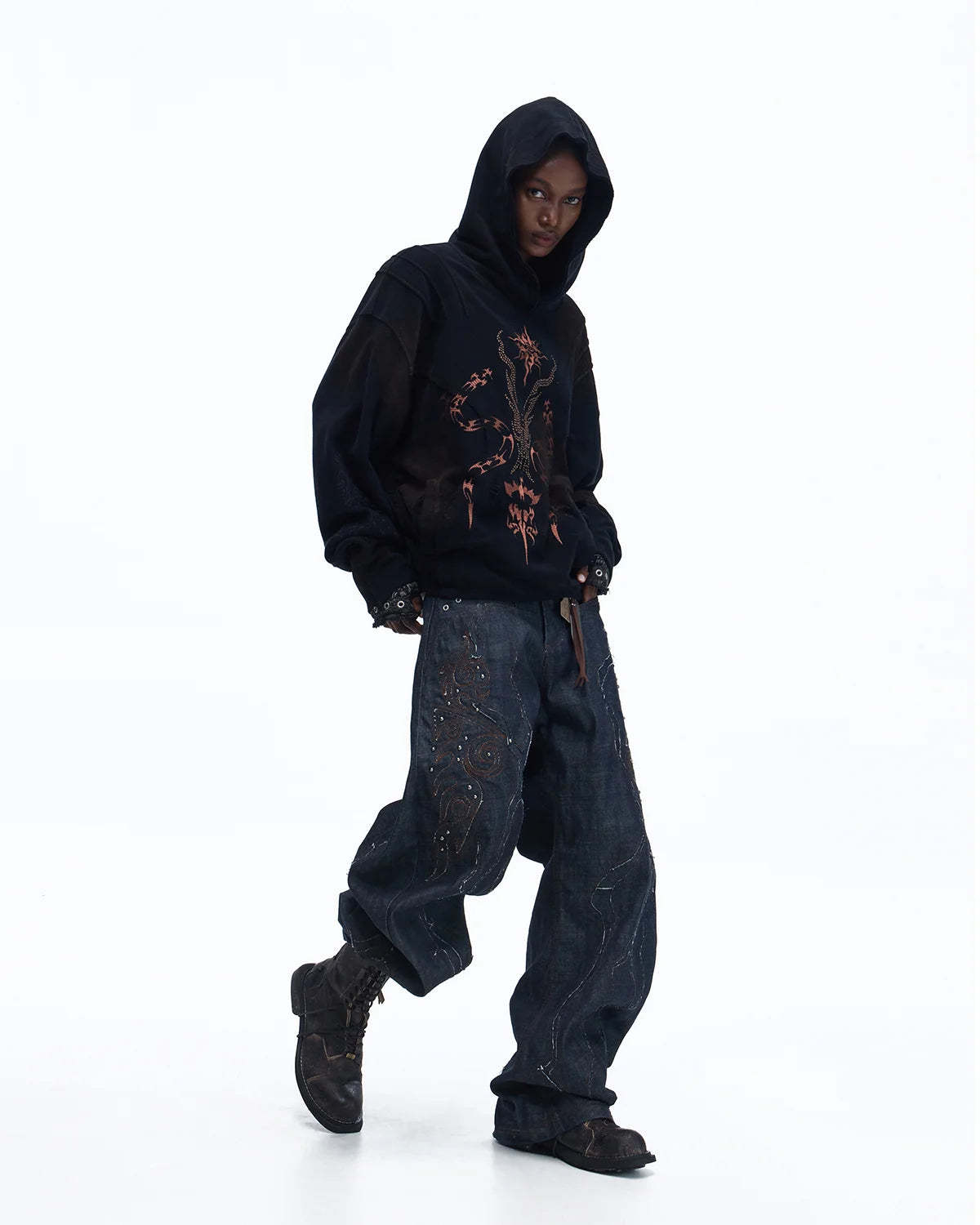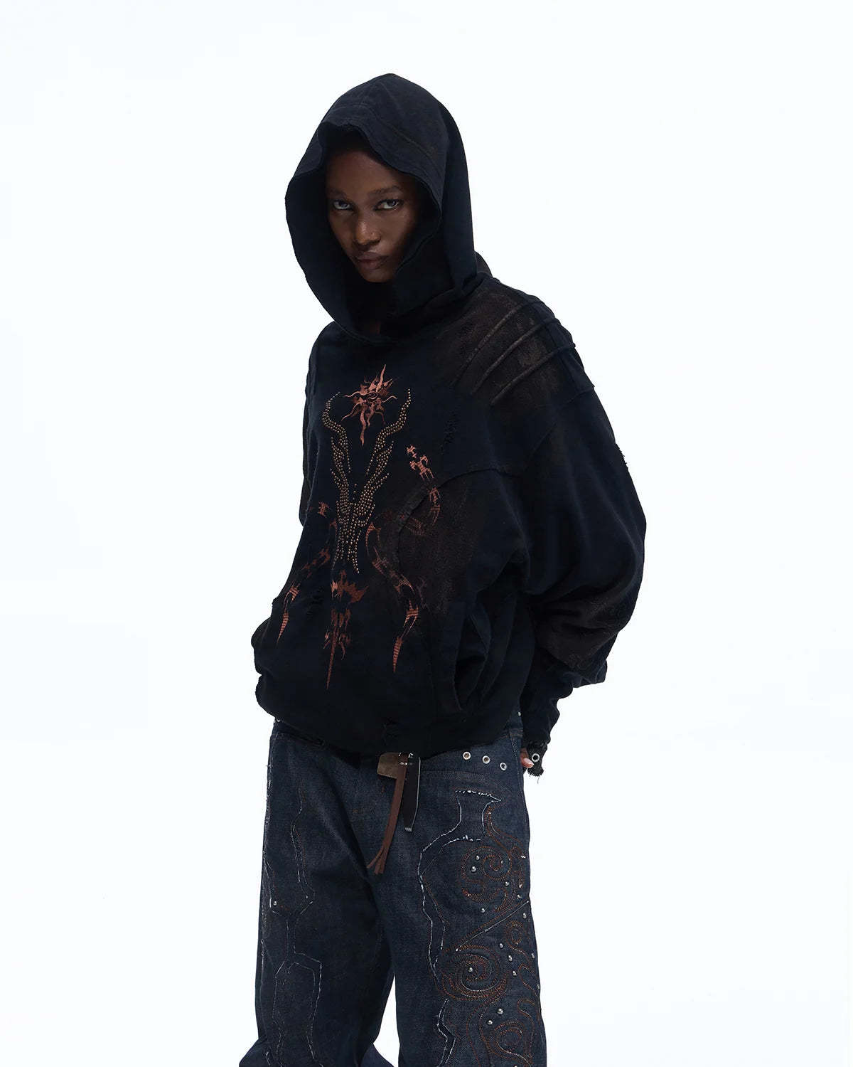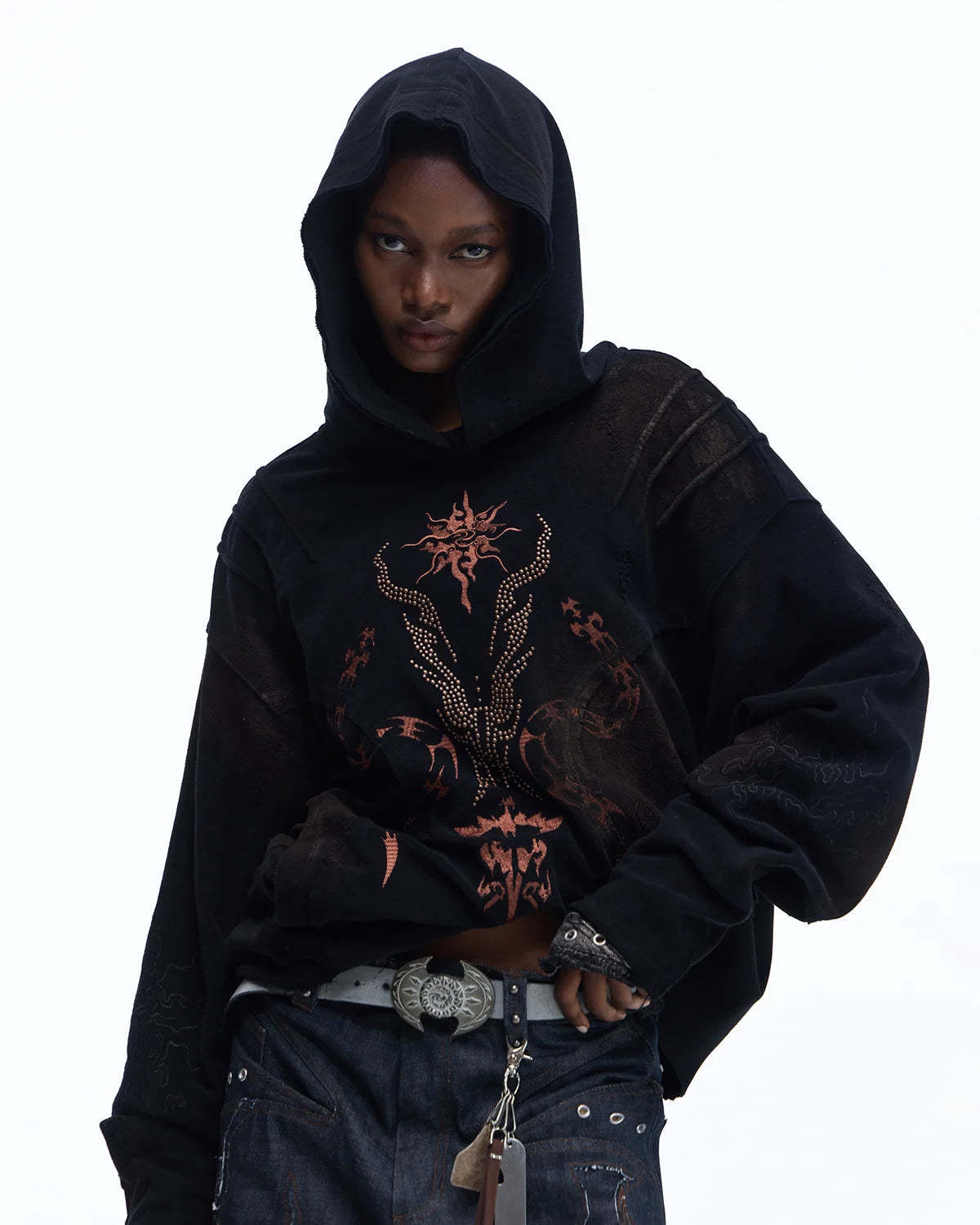 Personsoul Rhinestone Embroidered Hoodie In Black