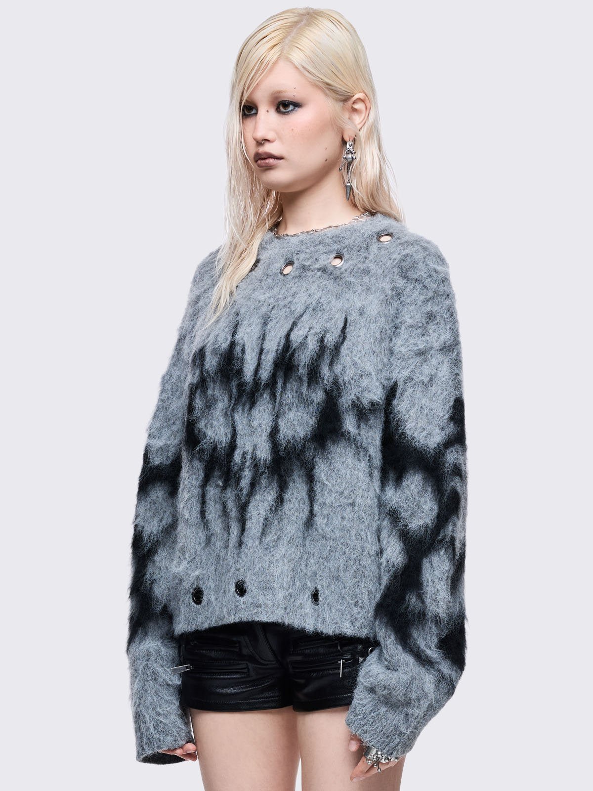 • Chunky silver eyelet details