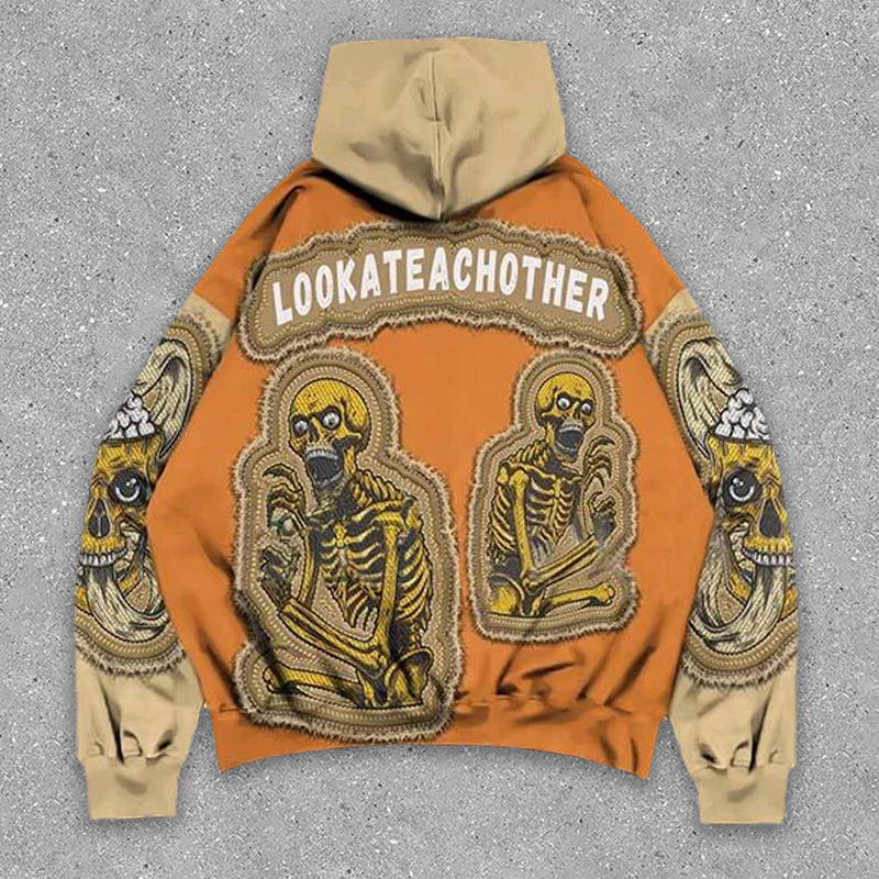 Faux tapestry skull hoodie