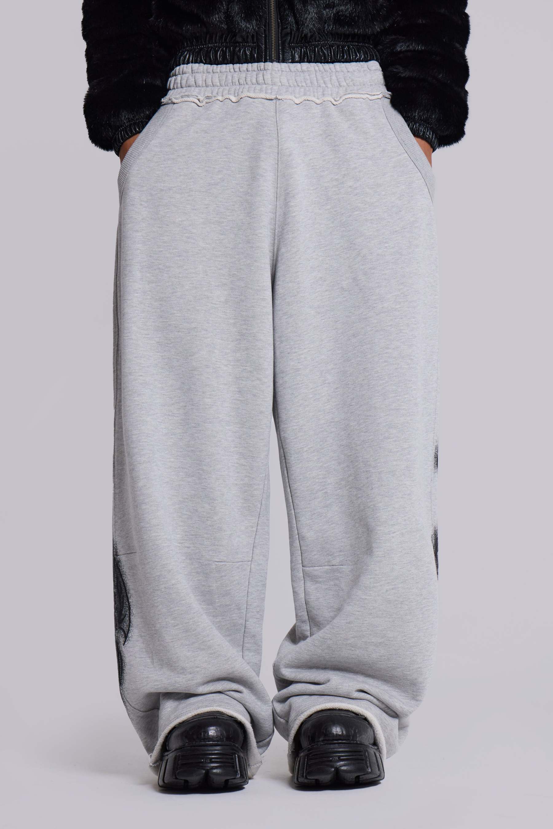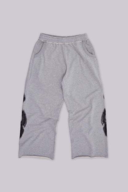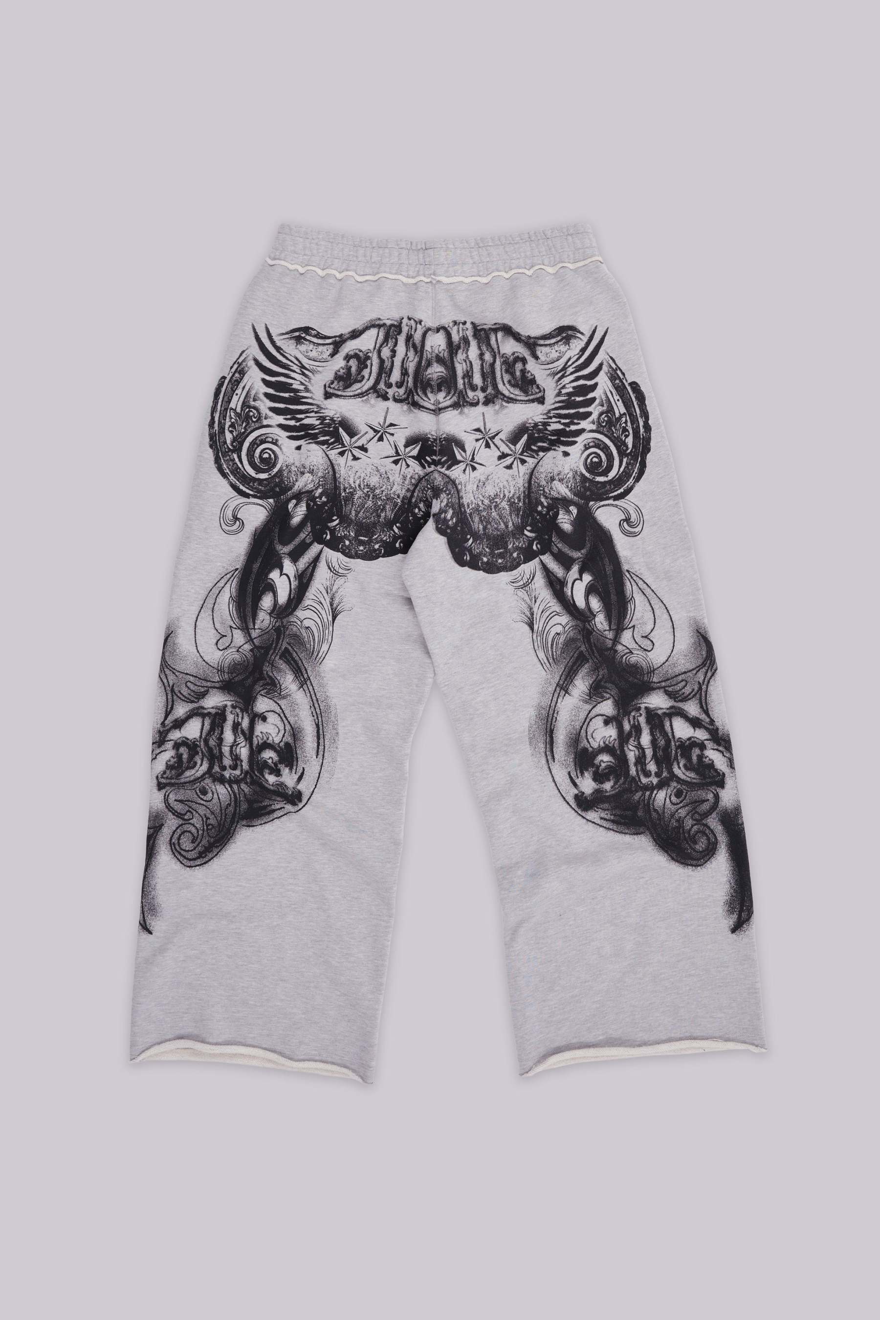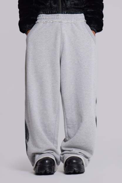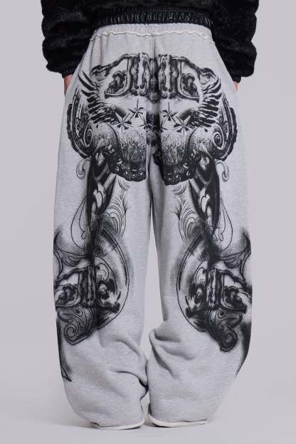 Grey Marl Gothic Print Baggy Monster Joggers