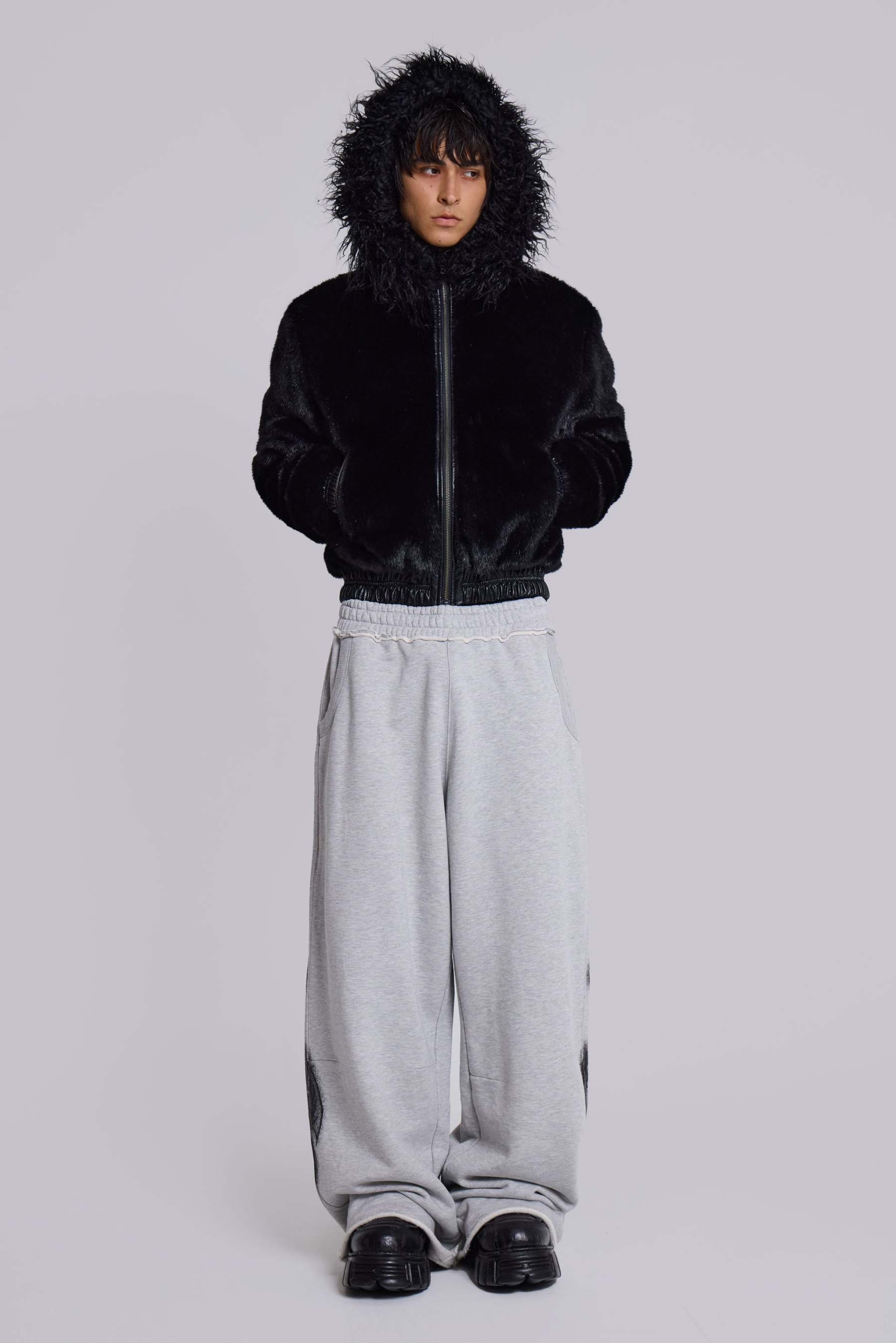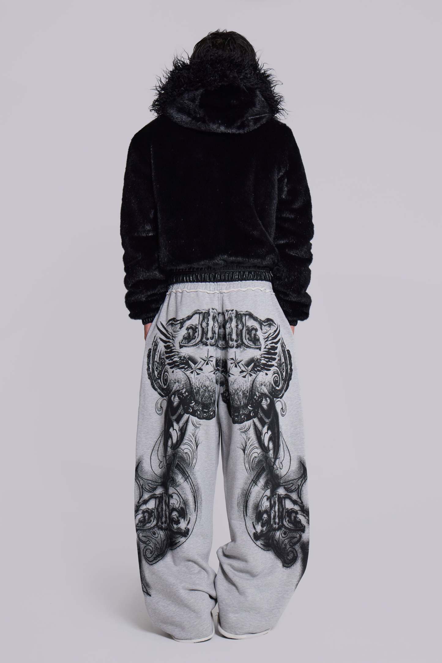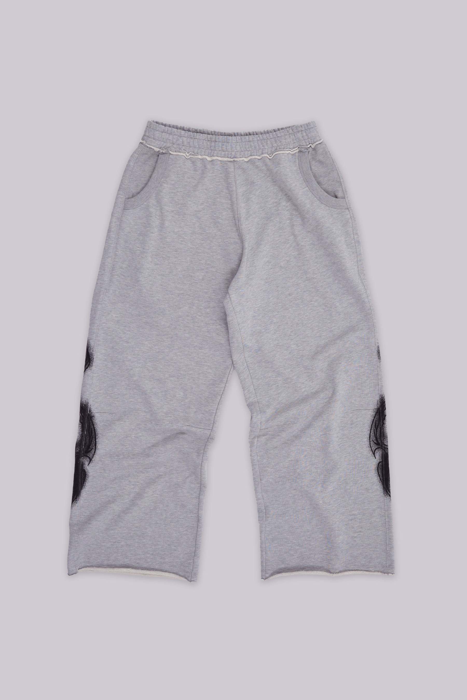 Grey Marl Gothic Print Baggy Monster Joggers