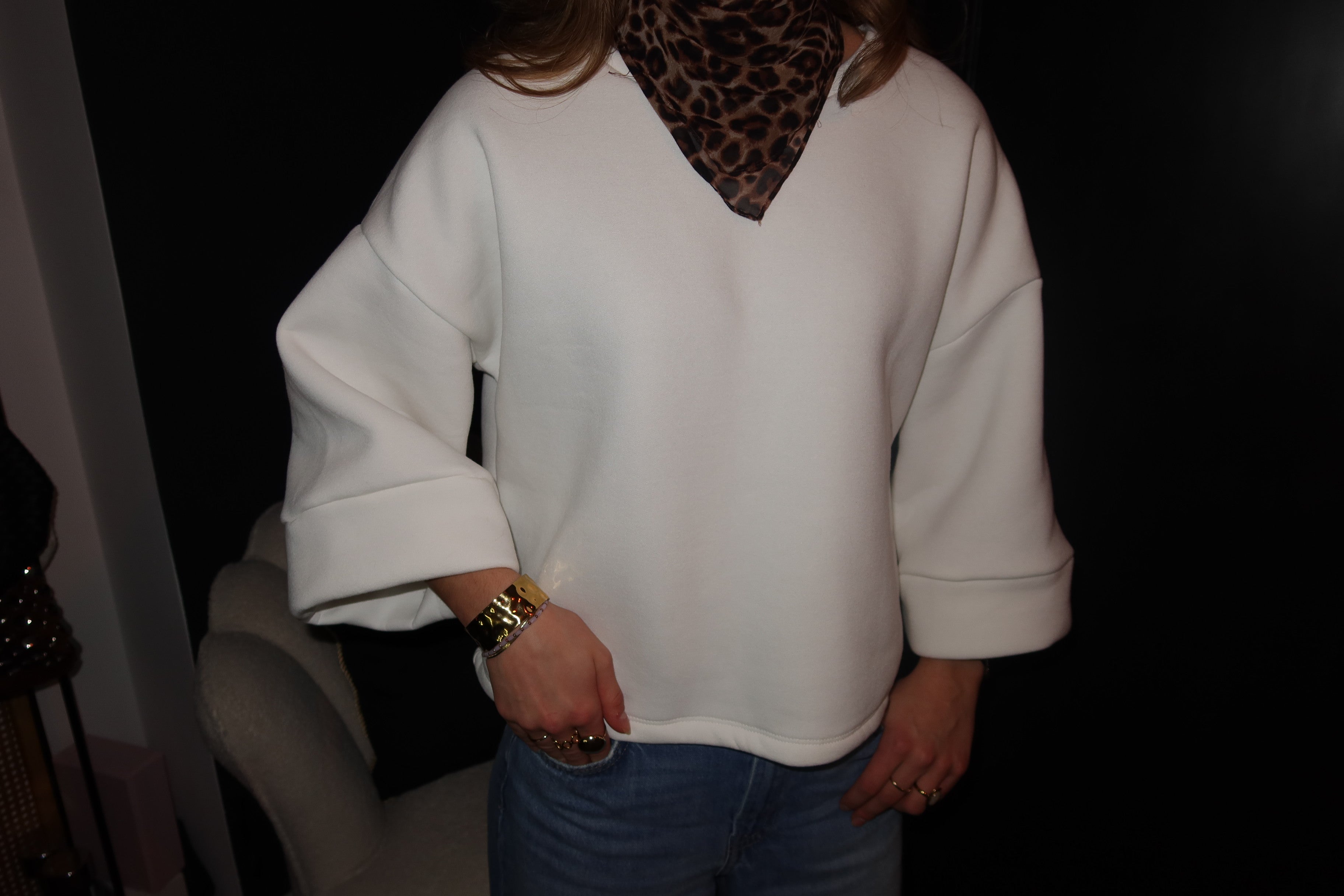 A clean white top designed with a relaxed, boxy silhouette and wide short sleeves. The soft yet structured fabric gives this piece a modern, effortless feel. Easy to combine with denim, tailored trousers or skirts, making it a versatile essential for everyday wear.