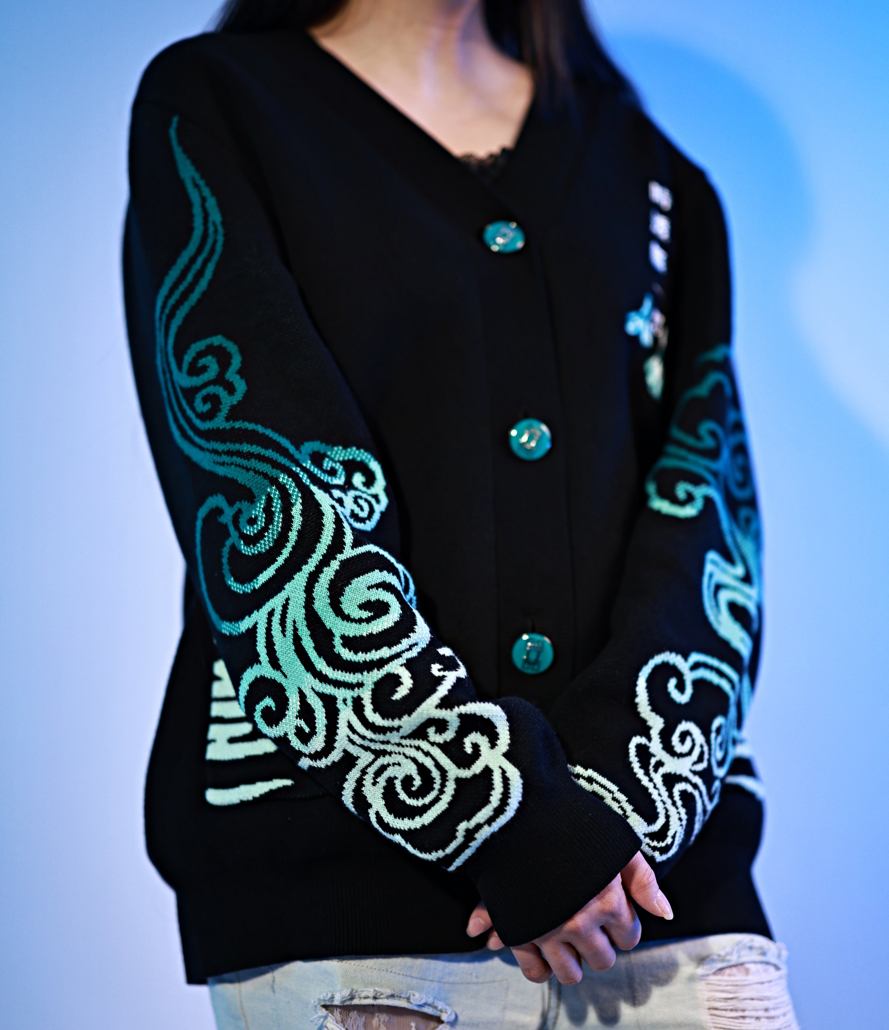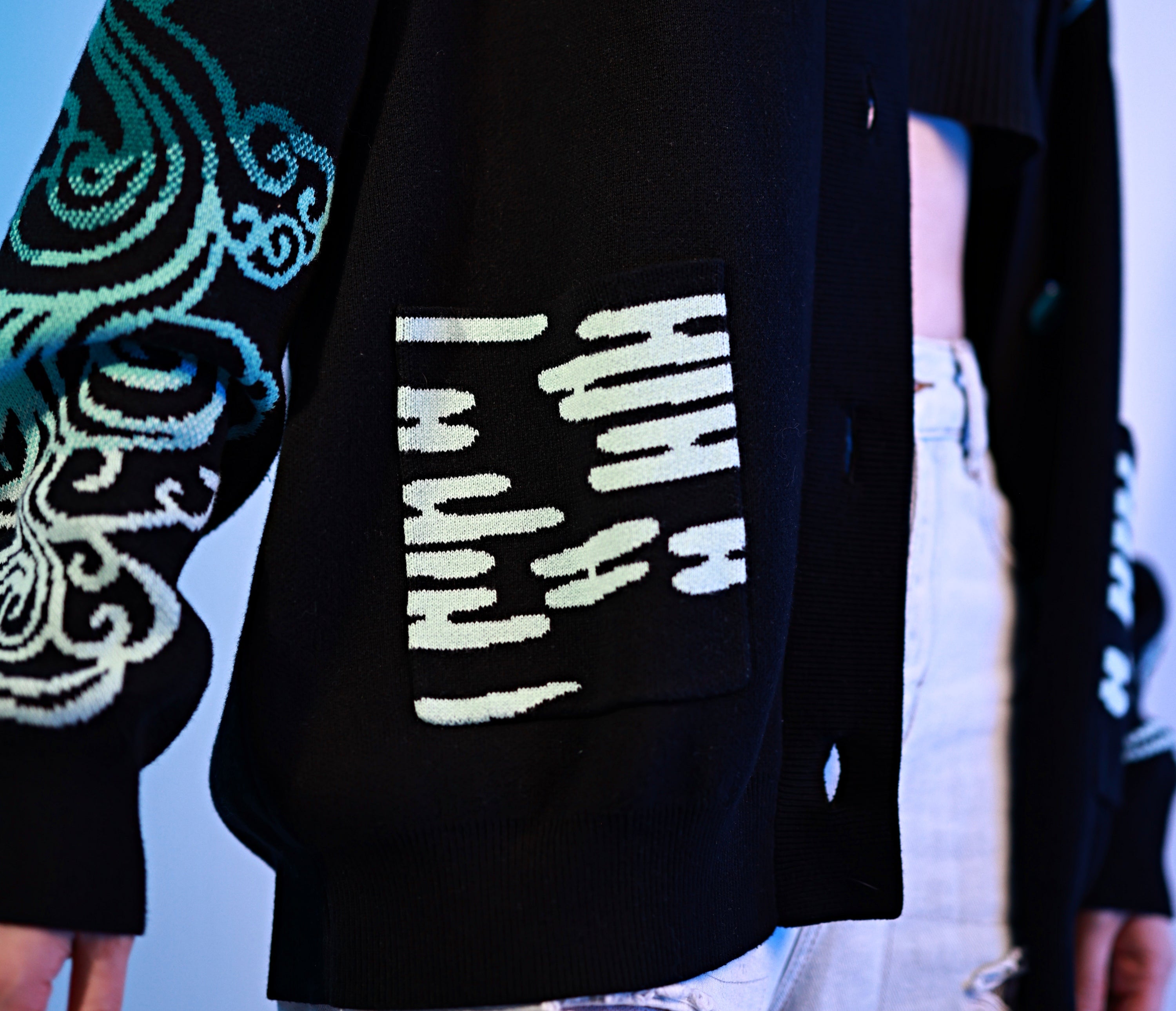 - The sweater also has mist jacquard patterns on the sleeves and pockets