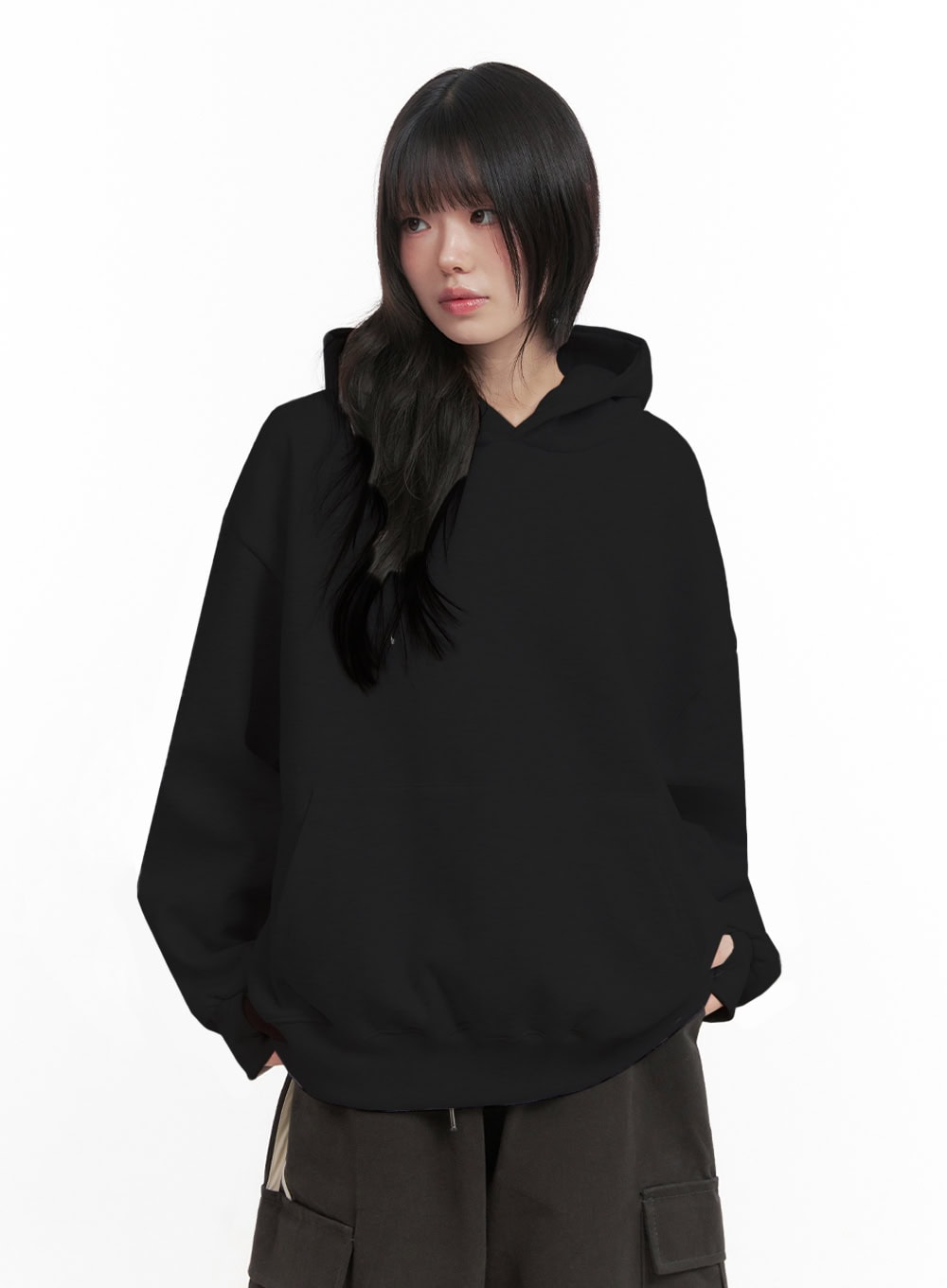 Oversized Solid Hooded Sweatshirt IN427