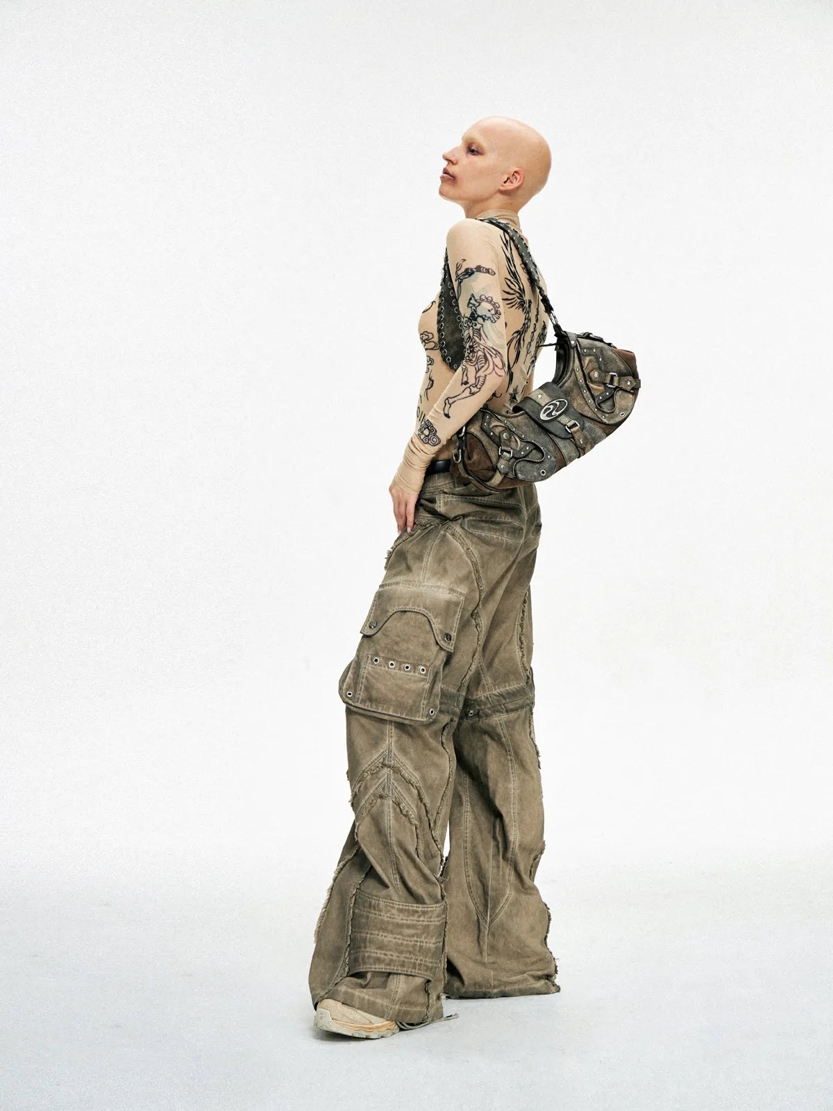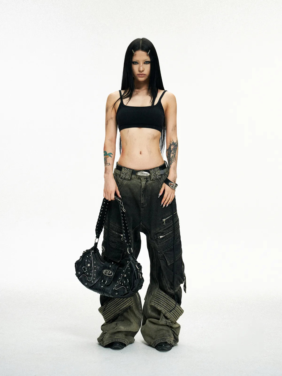 Personsoul Techwear Metal Leather Shoulder Bag