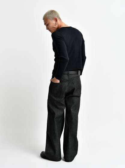 Japanese 3D Wide-Leg Jeans - Black