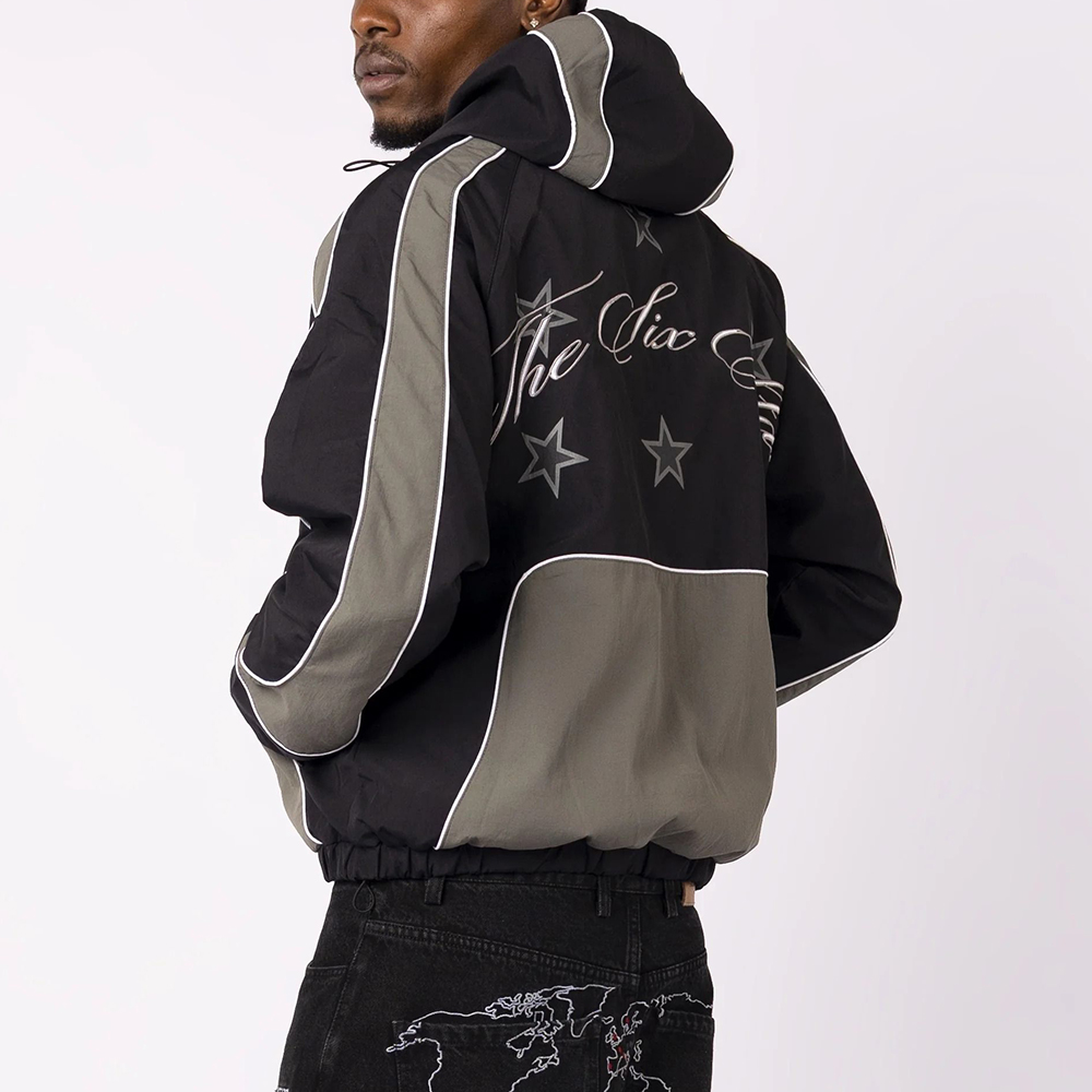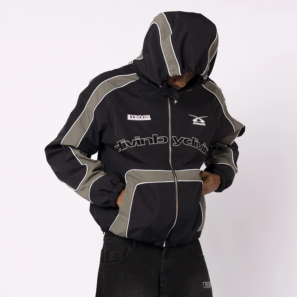 Stylish Color-Blocked Print Long-Sleeved Zipper Hooded Jacket