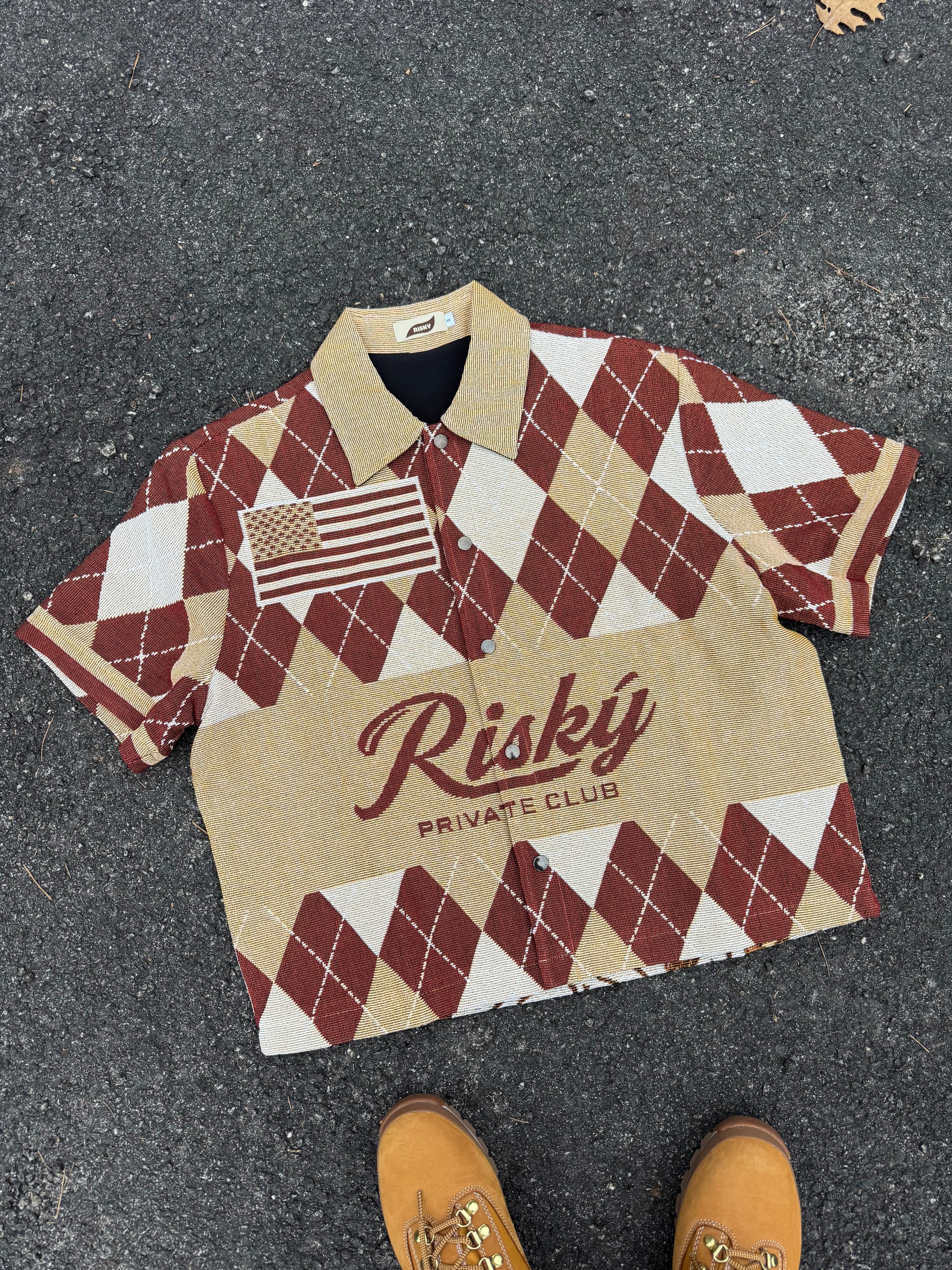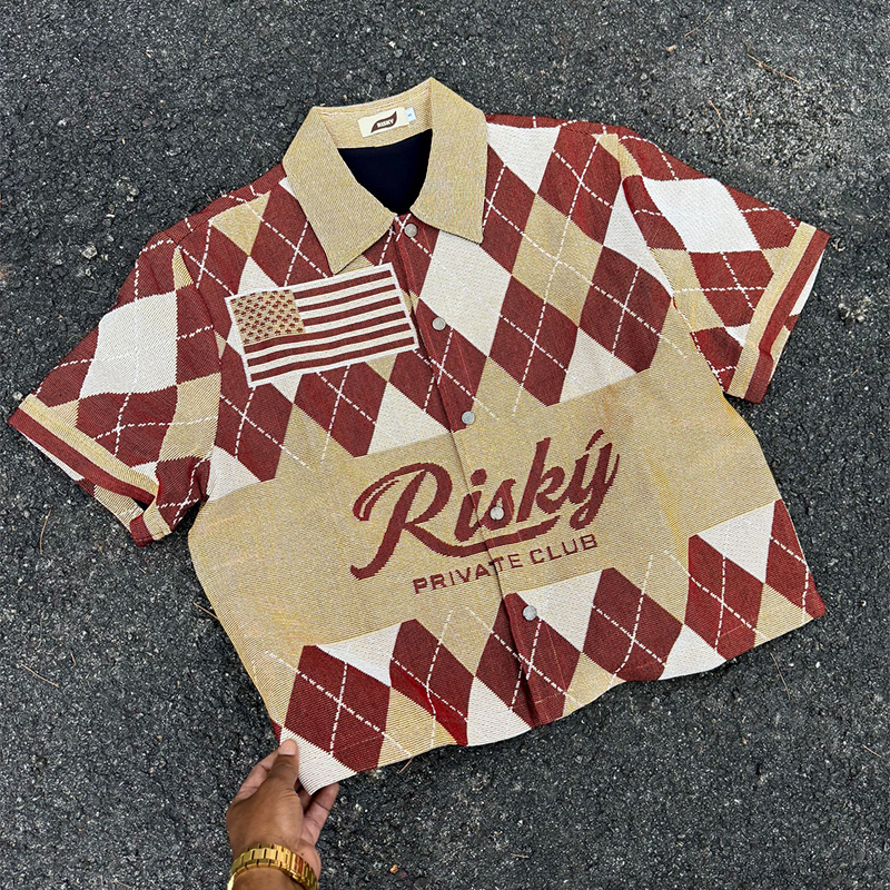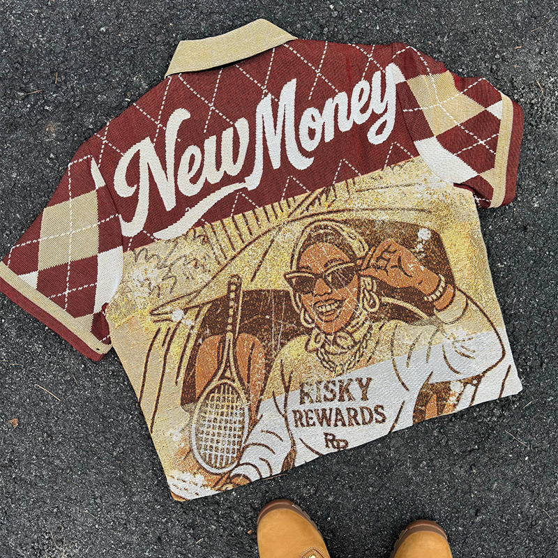 Currency Pattern Check Tapestry Short-Sleeved Jacket