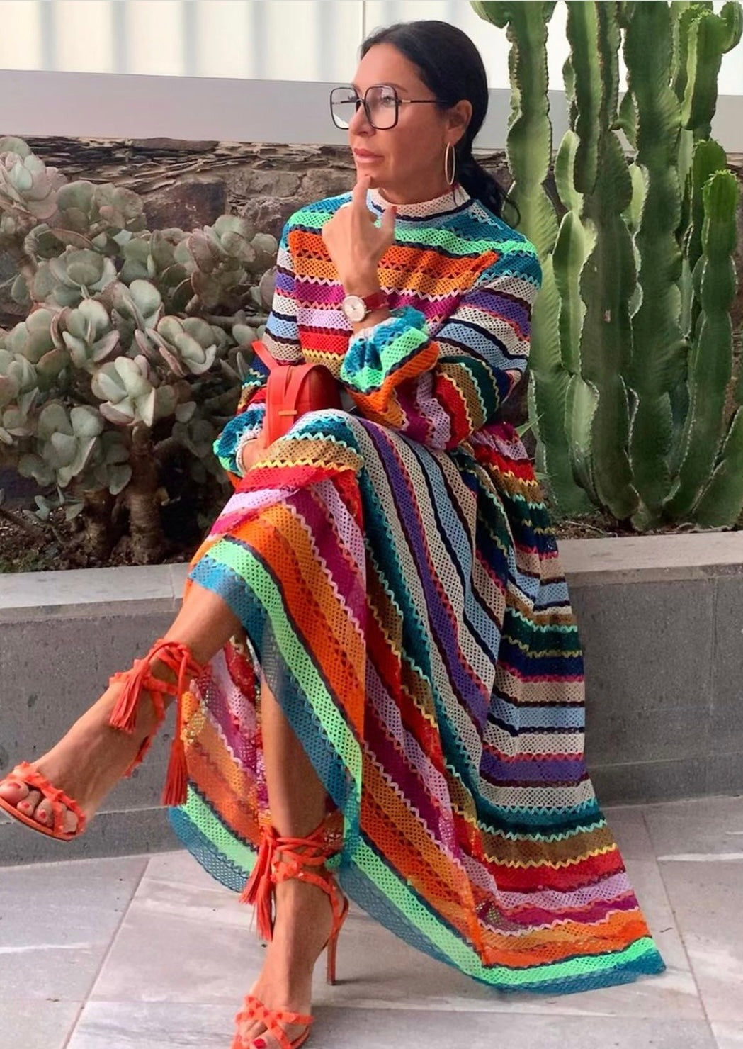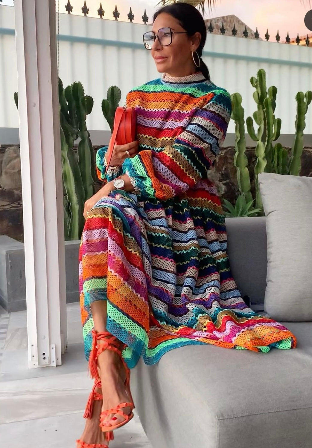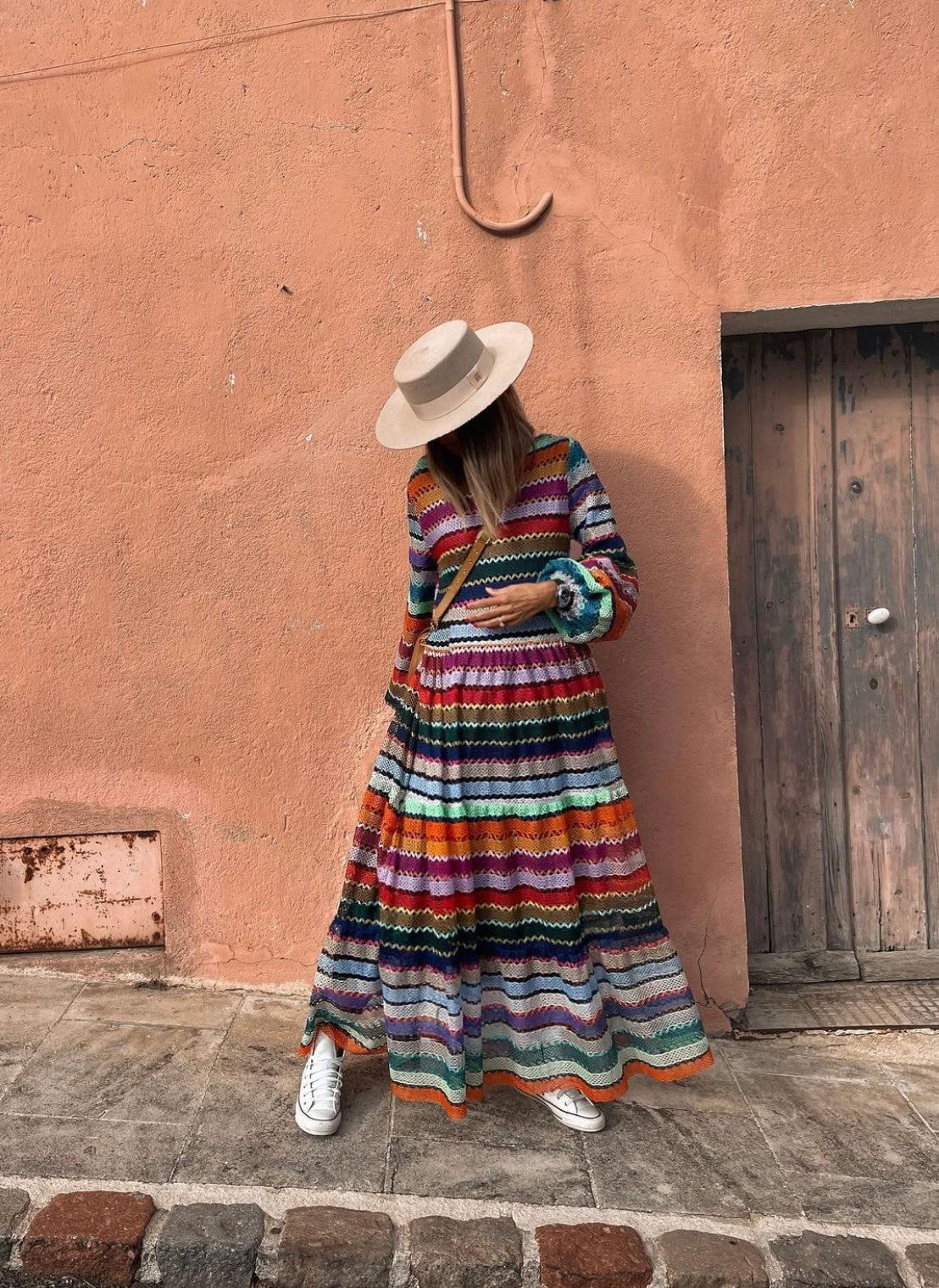Add a splash of colour to your wardrobe with the Dress Kim multicolour! This stunning knitted dress is sure to make a statement and turn heads. It fits sizes 34-40 (EU), making it a great choice for any body type. The fabric blend of 70% cotton and 30% polyester ensures maximum comfort and breathability, while the 100% cotton lining adds extra durability. Taking care of the Dress Kim is easy - just machine wash at 30 degrees for a long-lasting look. The length of the dress is 130 cm / 51 inch