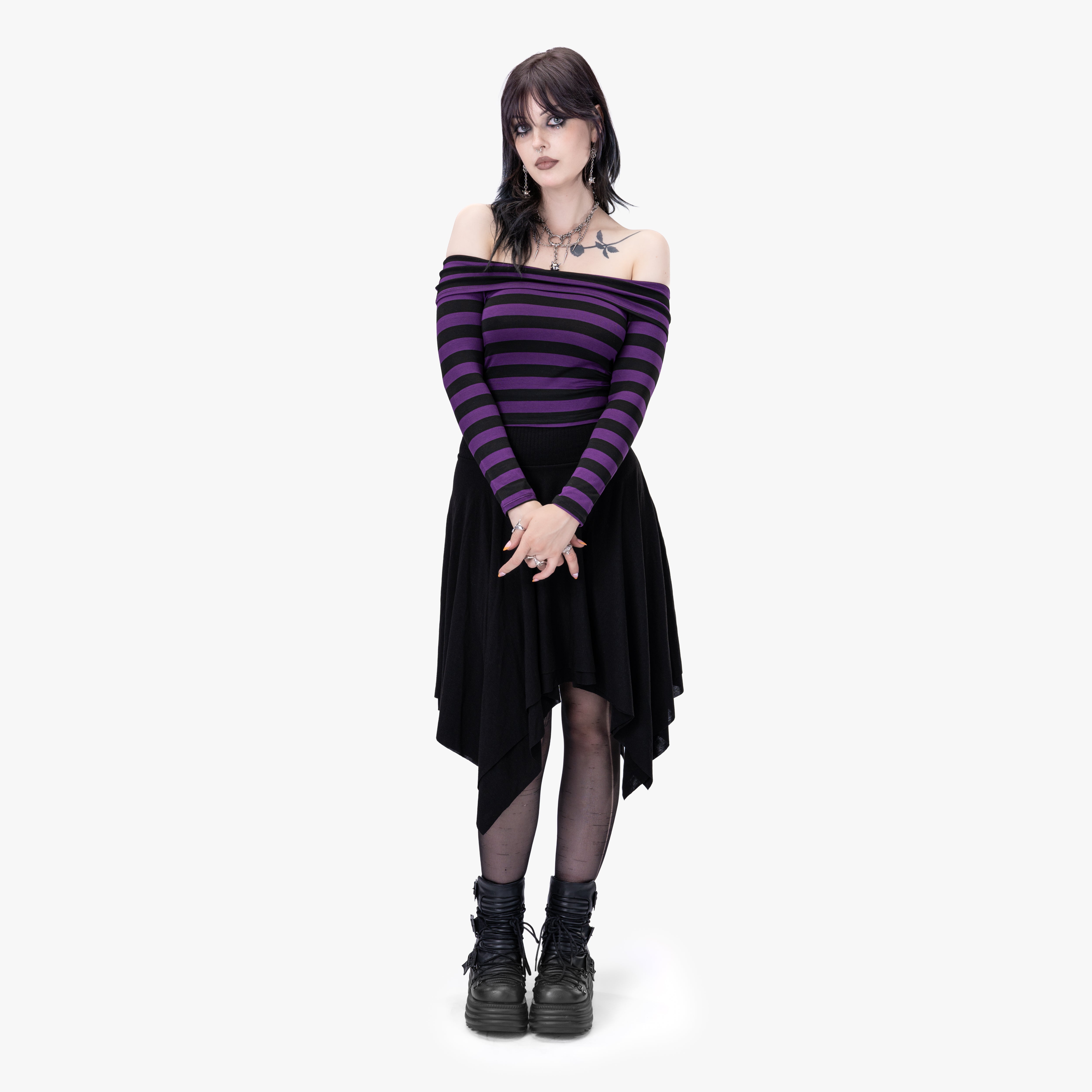 This off the shoulder top would go great with a pair of black jeans, a mini skirt, or shorts!