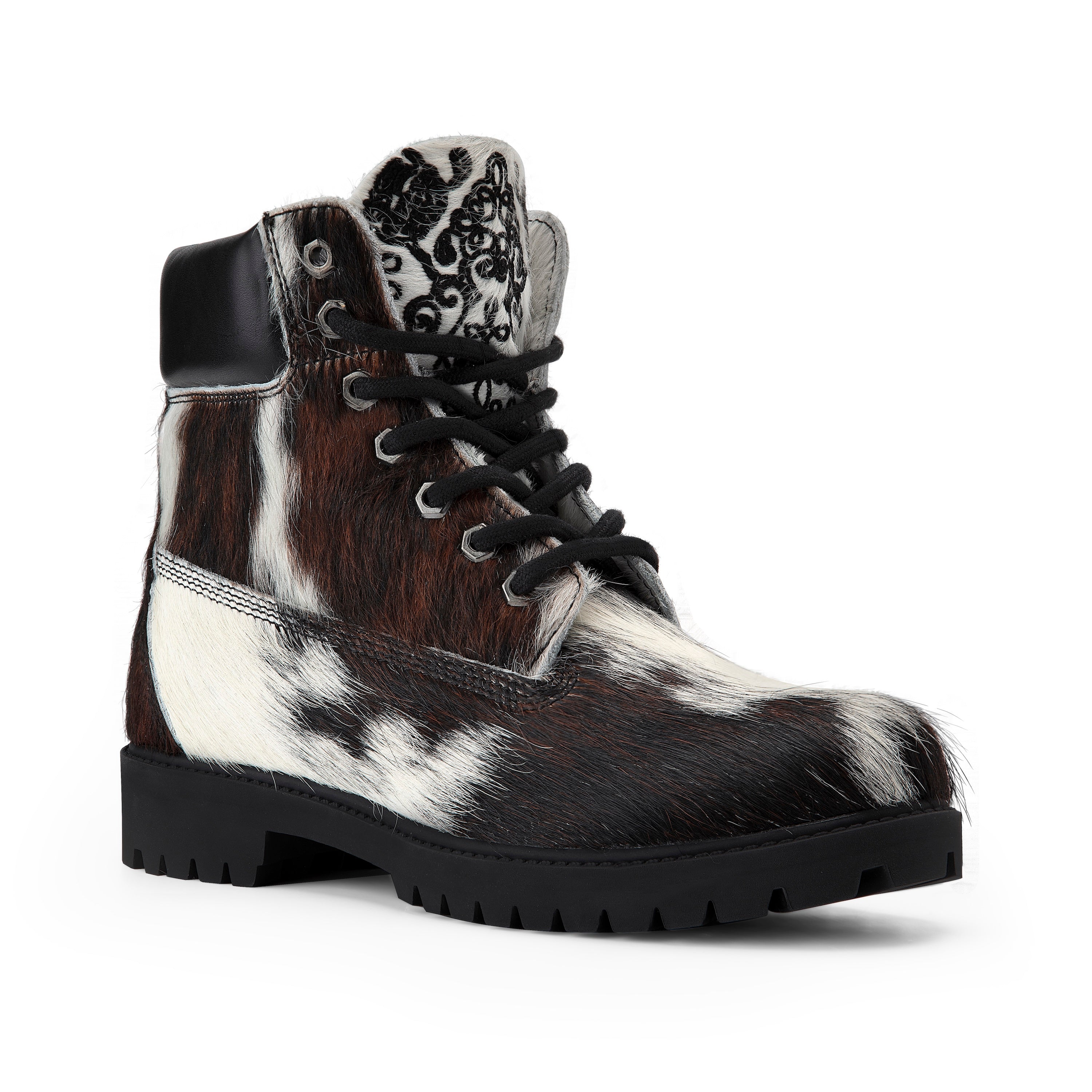 REAL COWHIDE MAY PATTERN WILL VARY WITH EACH SHOE / cow hide genuine leather / leather inner-lining / embossed insole / embroidery on tongue / rubber sole / fits true to size / manufactured in Türkiye
