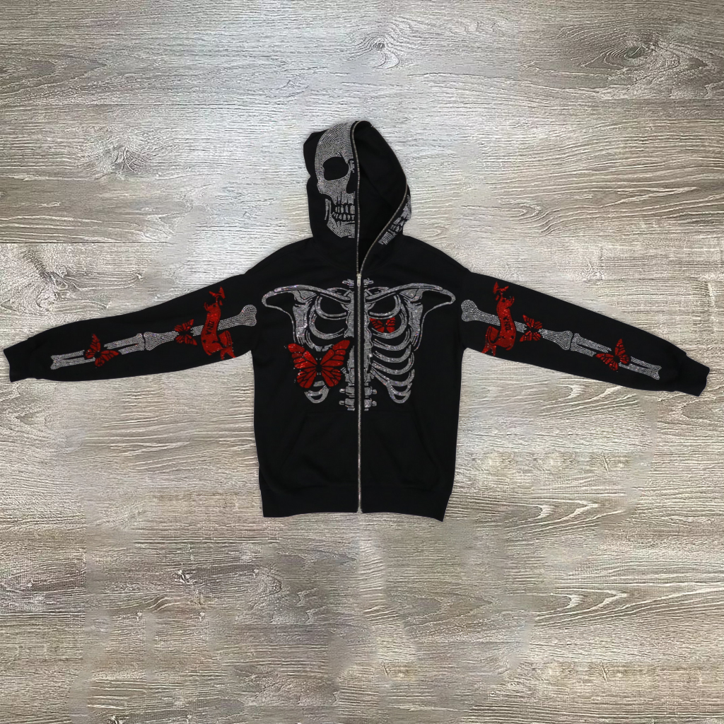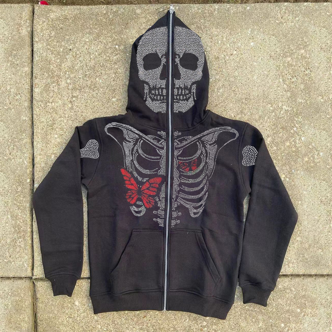 Butterfly skull casual street sports hoodie