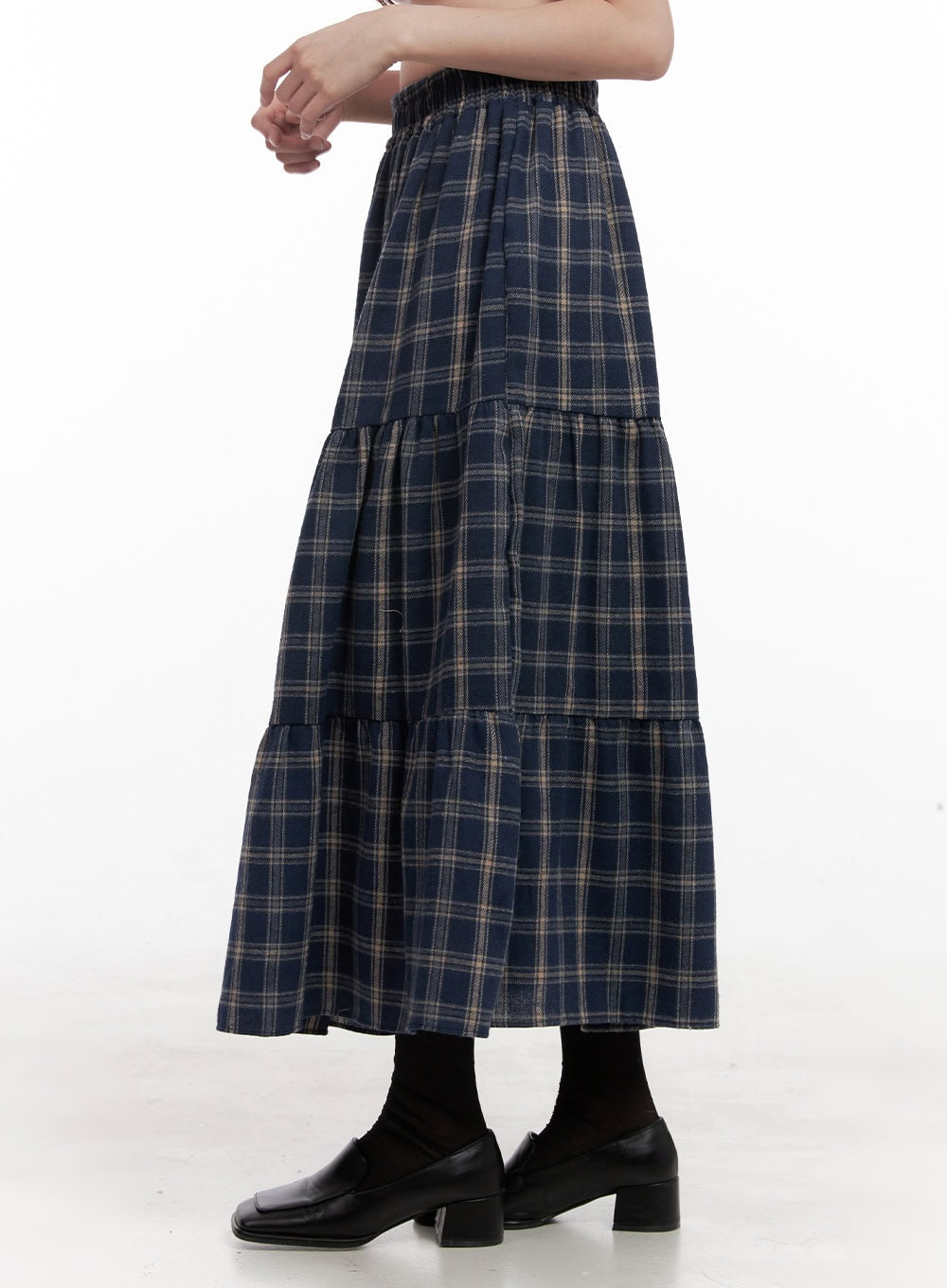 Checkered Ruffle Maxi Skirt OD403