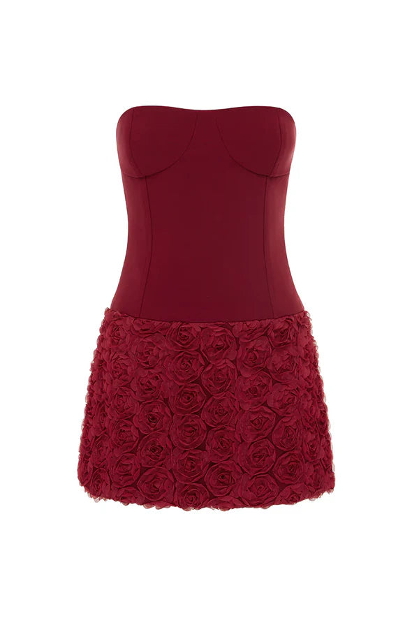 Step into the spotlight with this stunning 3D Floral Textured Strapless Bodycon Mini Dress. Featuring a sculpted bustier-style neckline and luxurious raised floral textures, it brings couture-level detail to your special-occasion wardrobe. The cinched waist and curve-hugging silhouette enhance your hourglass shape, while the mini length adds a flirty, elegant touch. Perfect for parties, celebrations, cocktail nights, and any moment you want to look unforgettable.