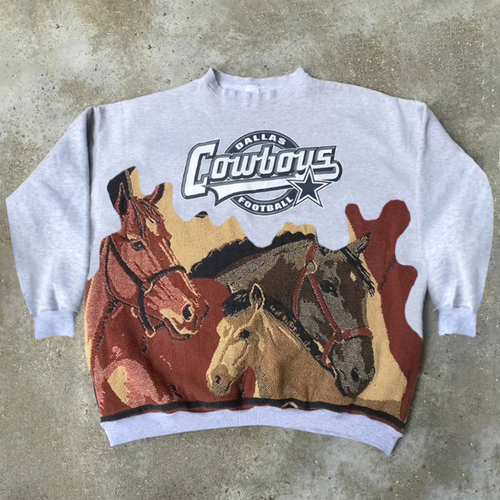 Cowboys Horse Print Long Sleeve Sweatshirt