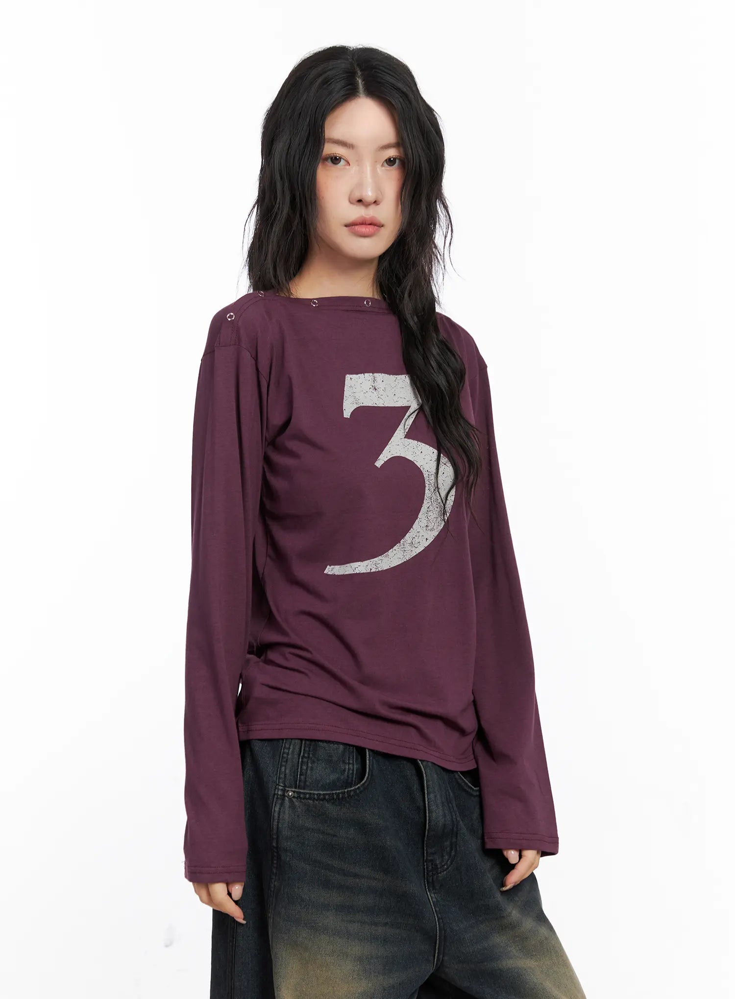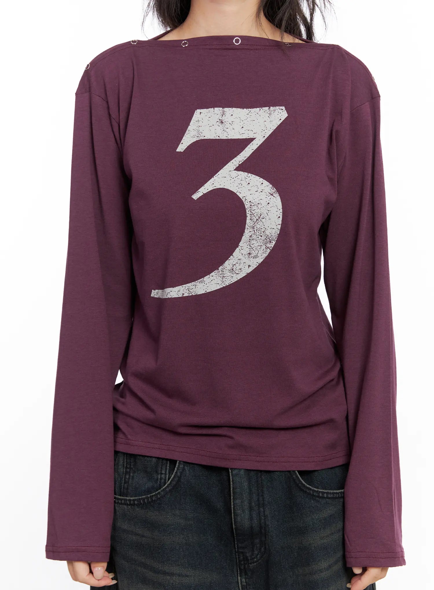 Eyelet Graphic Off-Shoulder Top CO507