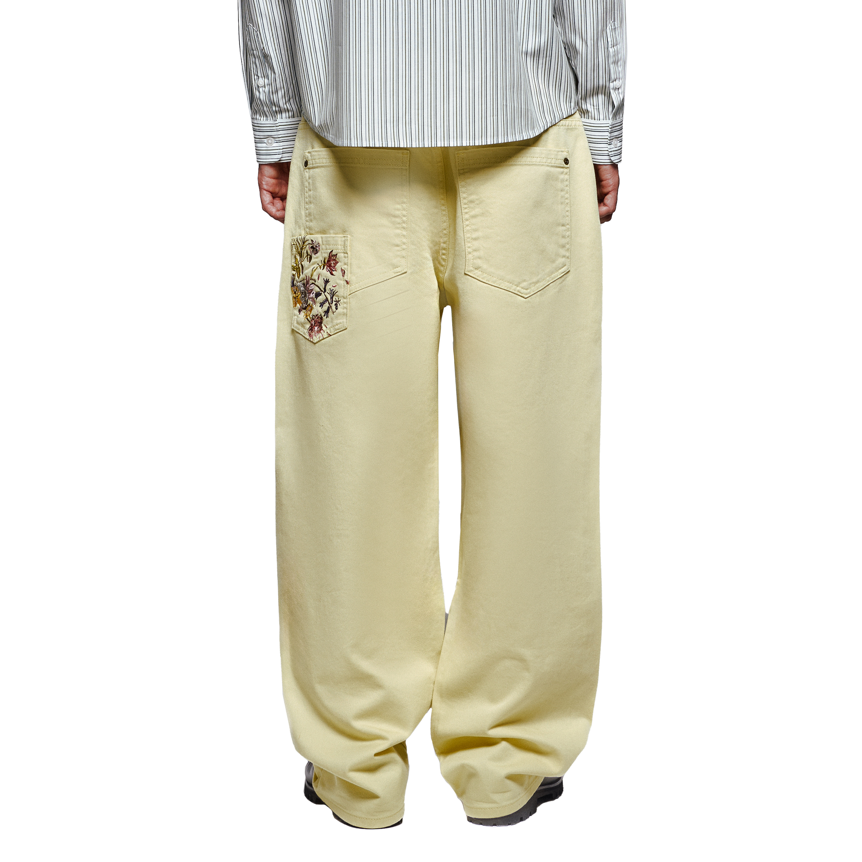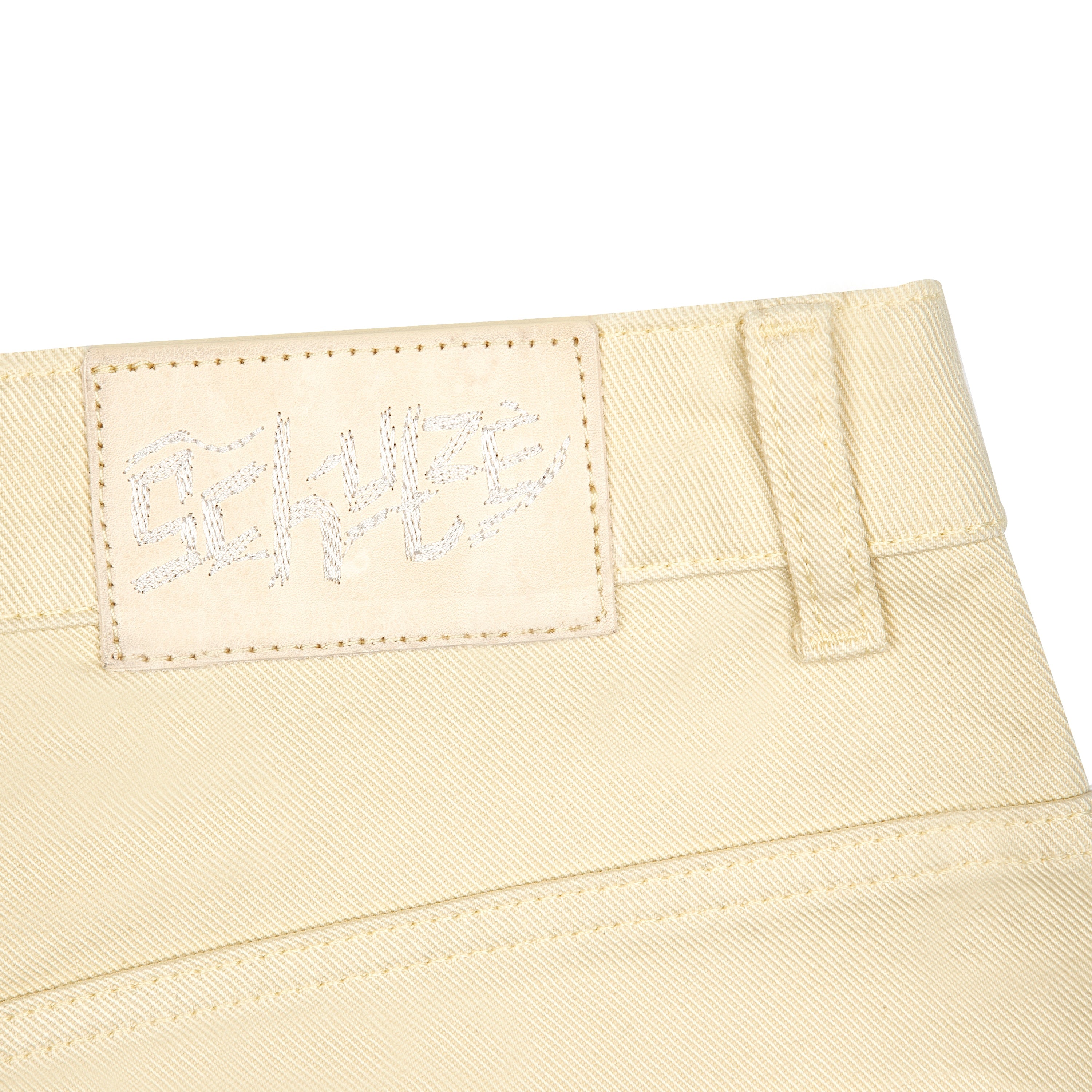 13,5oz denim / 100% cotton / embroidered patch pockets on front and back (also embroidery on front side pocket) / plaid patterned deboss printed leather patch / custom button / baggy fit / fits true to size