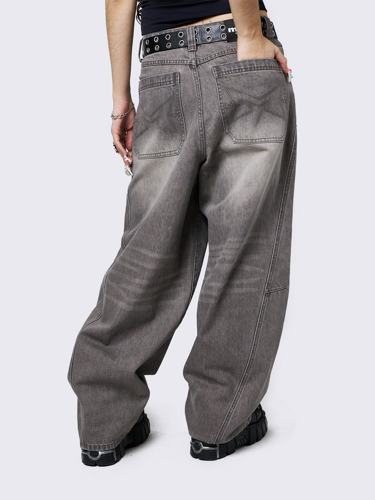 • Grey washed baggy jeans