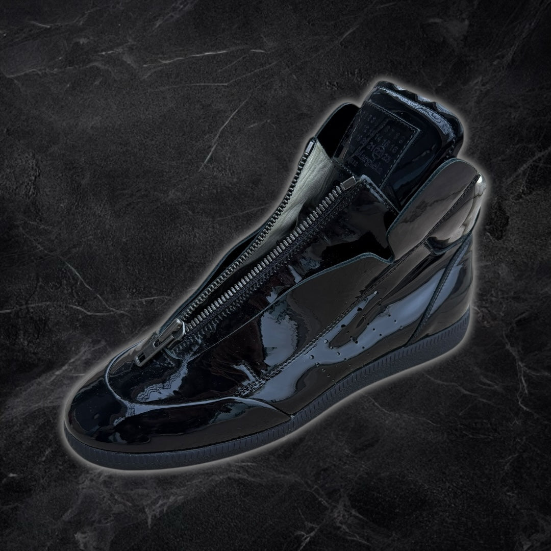 Maison Margiela “Circuit” patent leather high-top sneakers (Black)