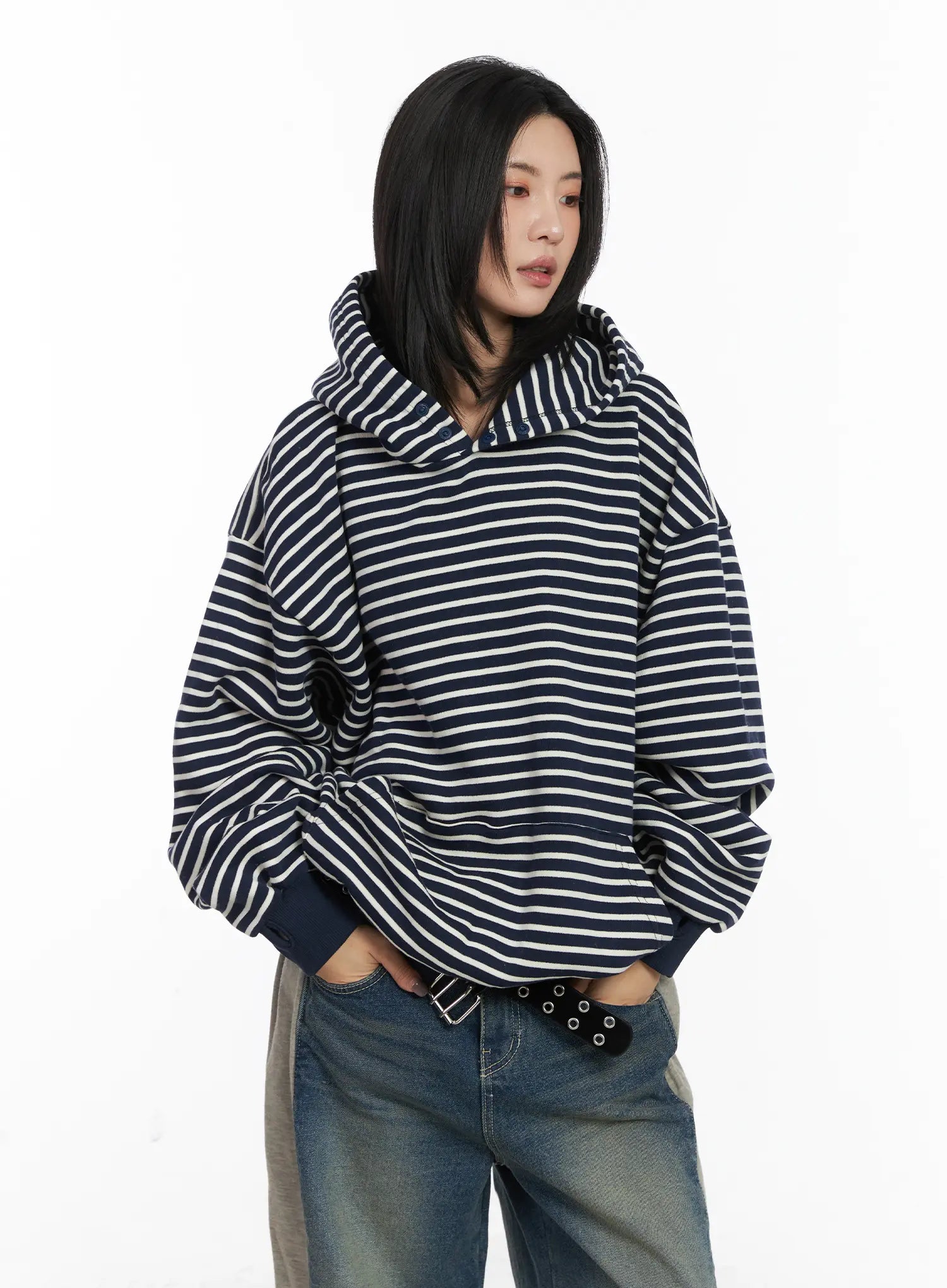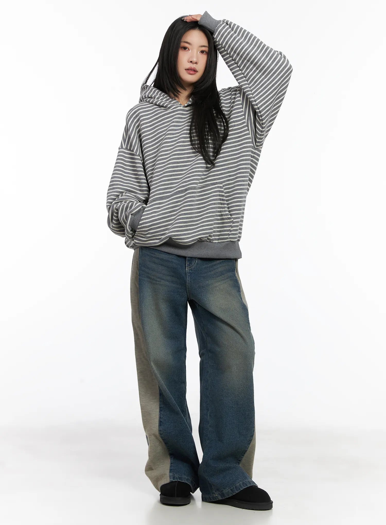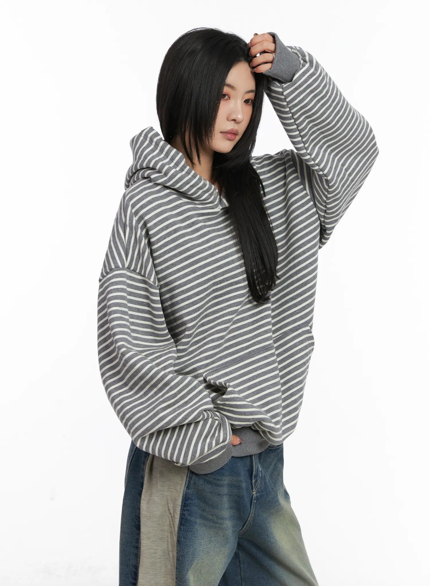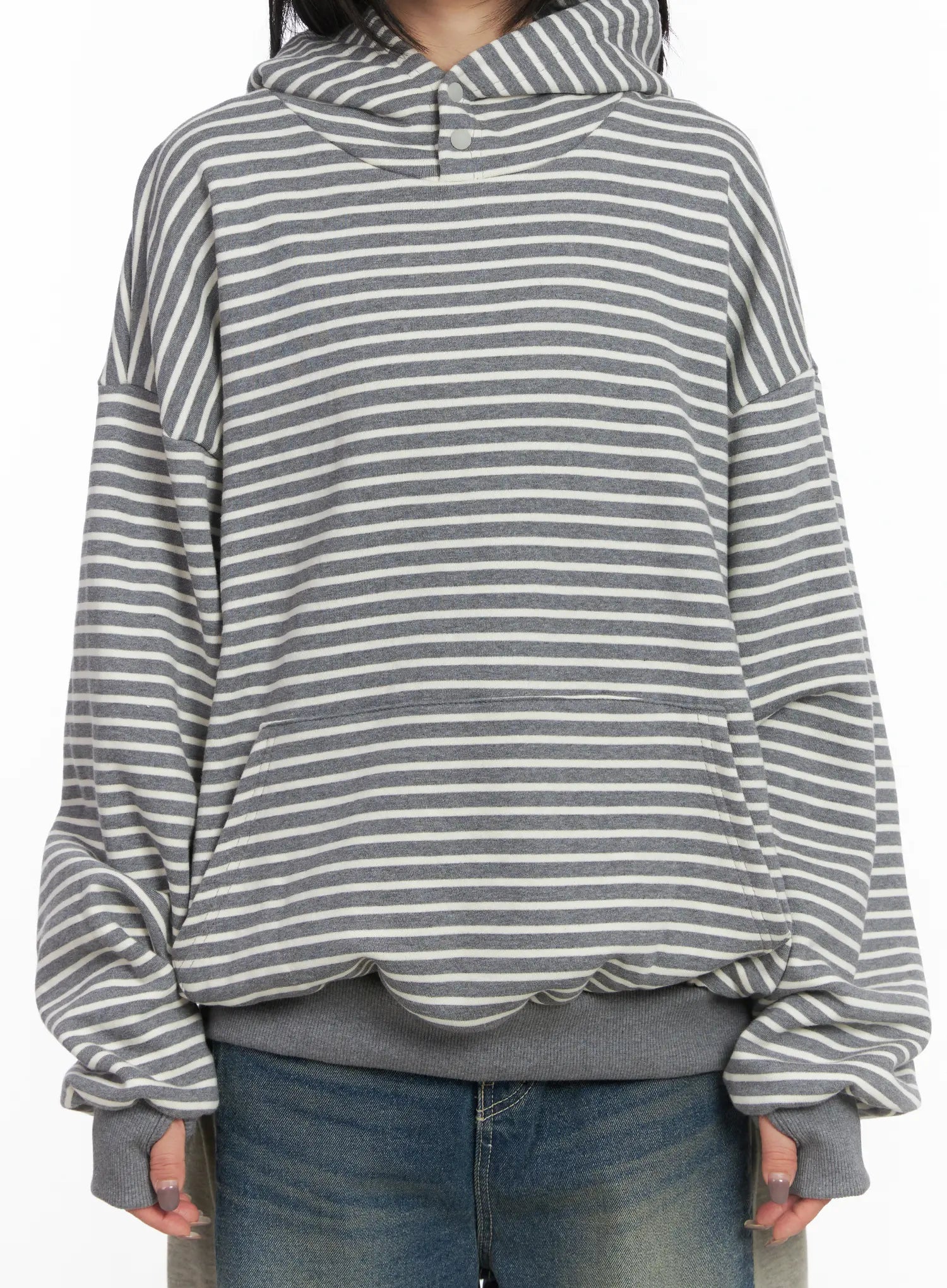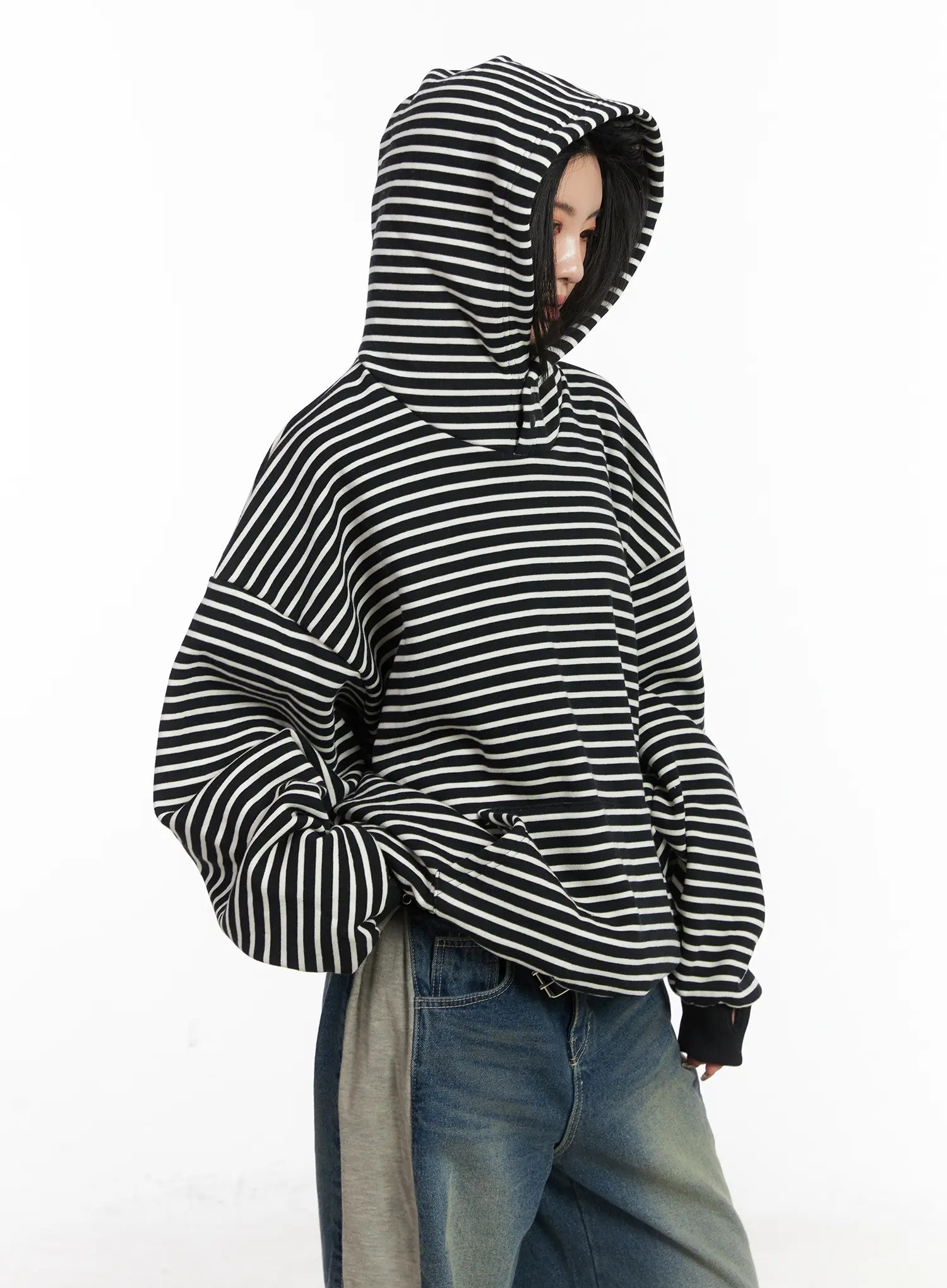 Oversized Striped Fleece Hoodie CD505