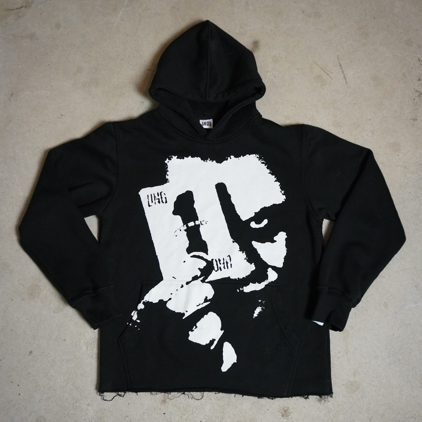 Personalized retro irregular hem print hoodie