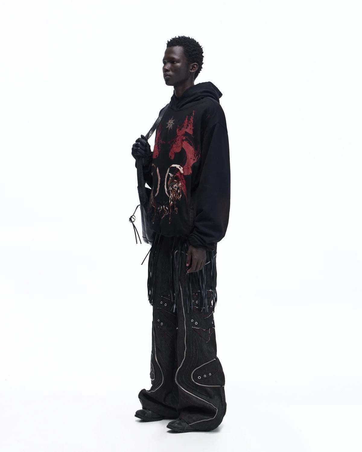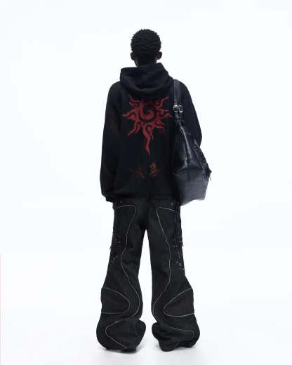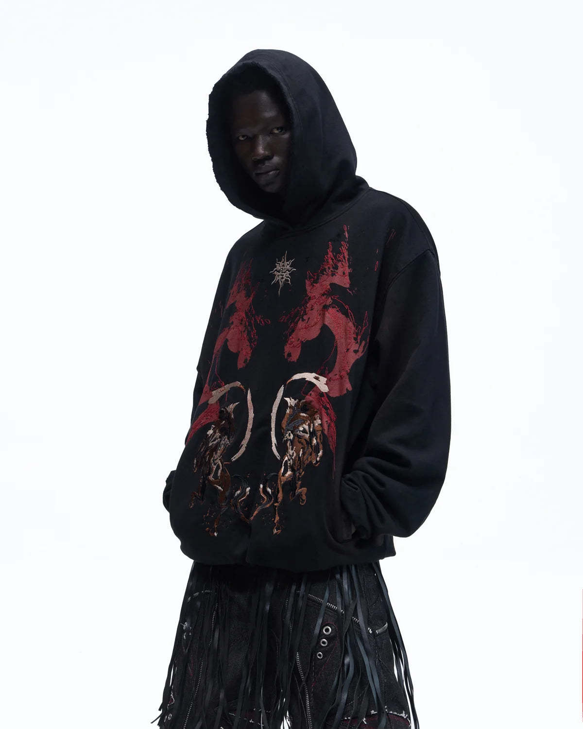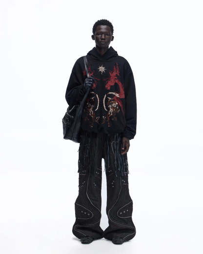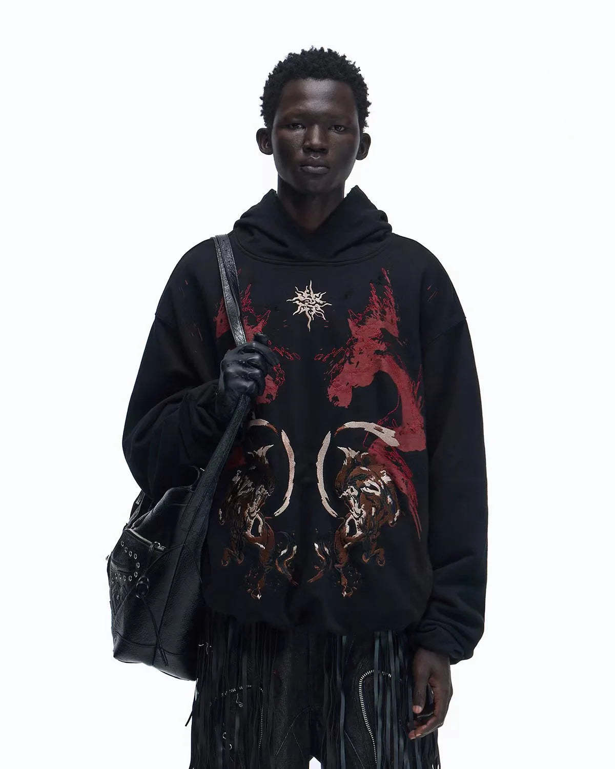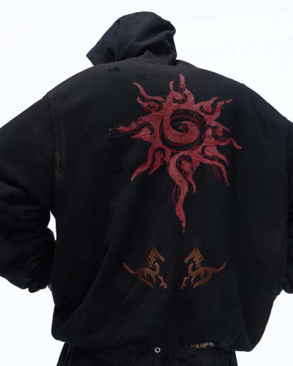 Personsoul Horse Print & Sun Totem Hoodie In Black