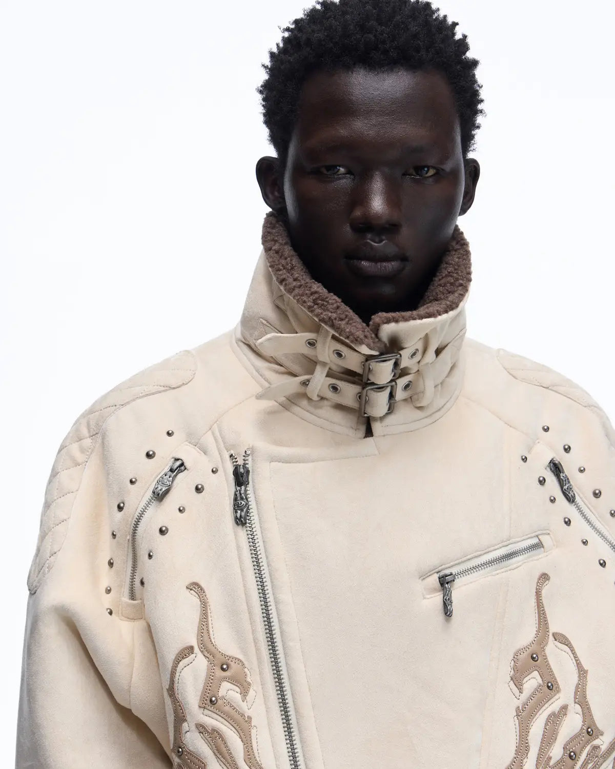Personsoul Lightning Totem Stand Collar Jacket In White