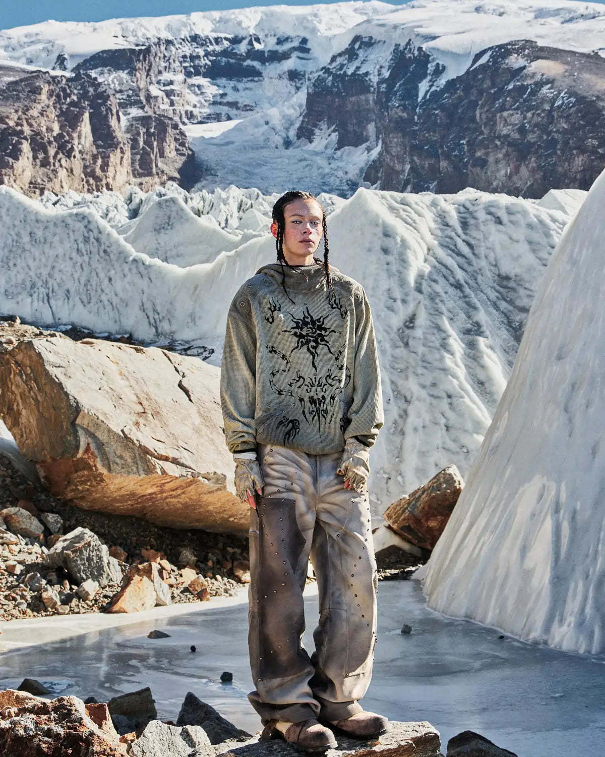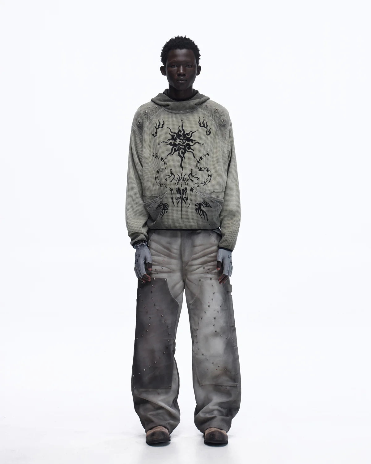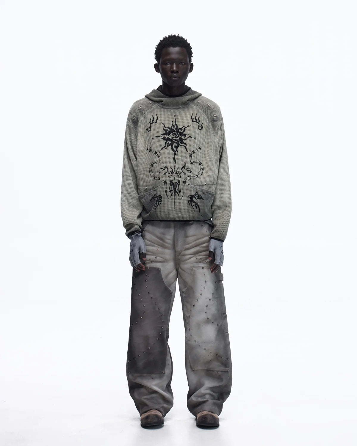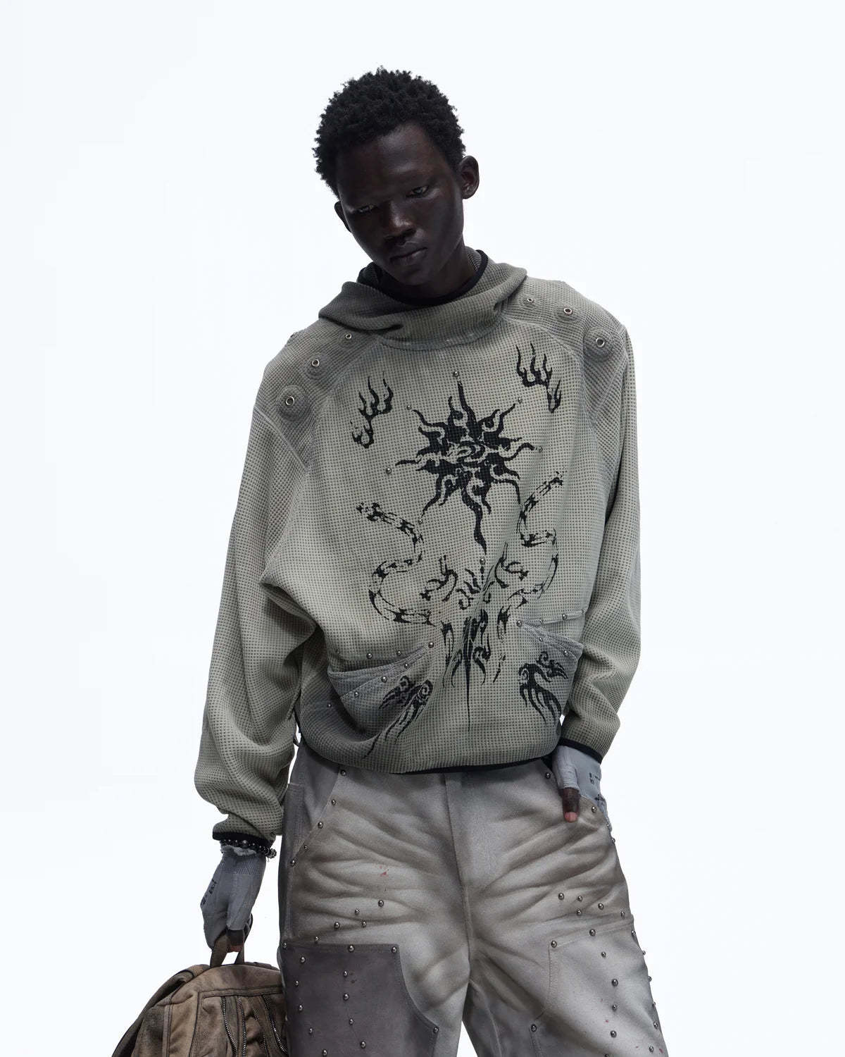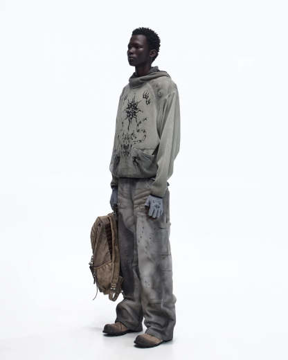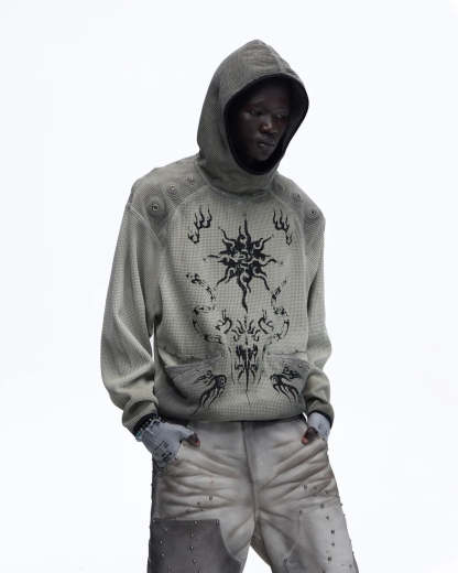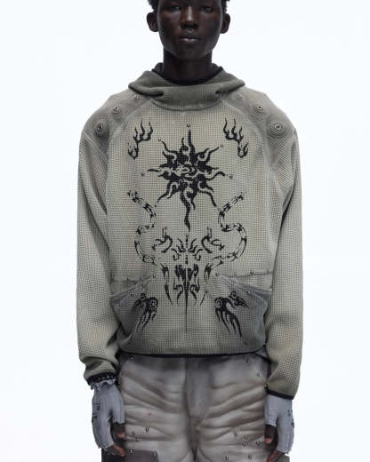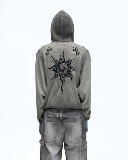 Personsoul Solar Totem Textured Plaid Hooded Sweatshirt