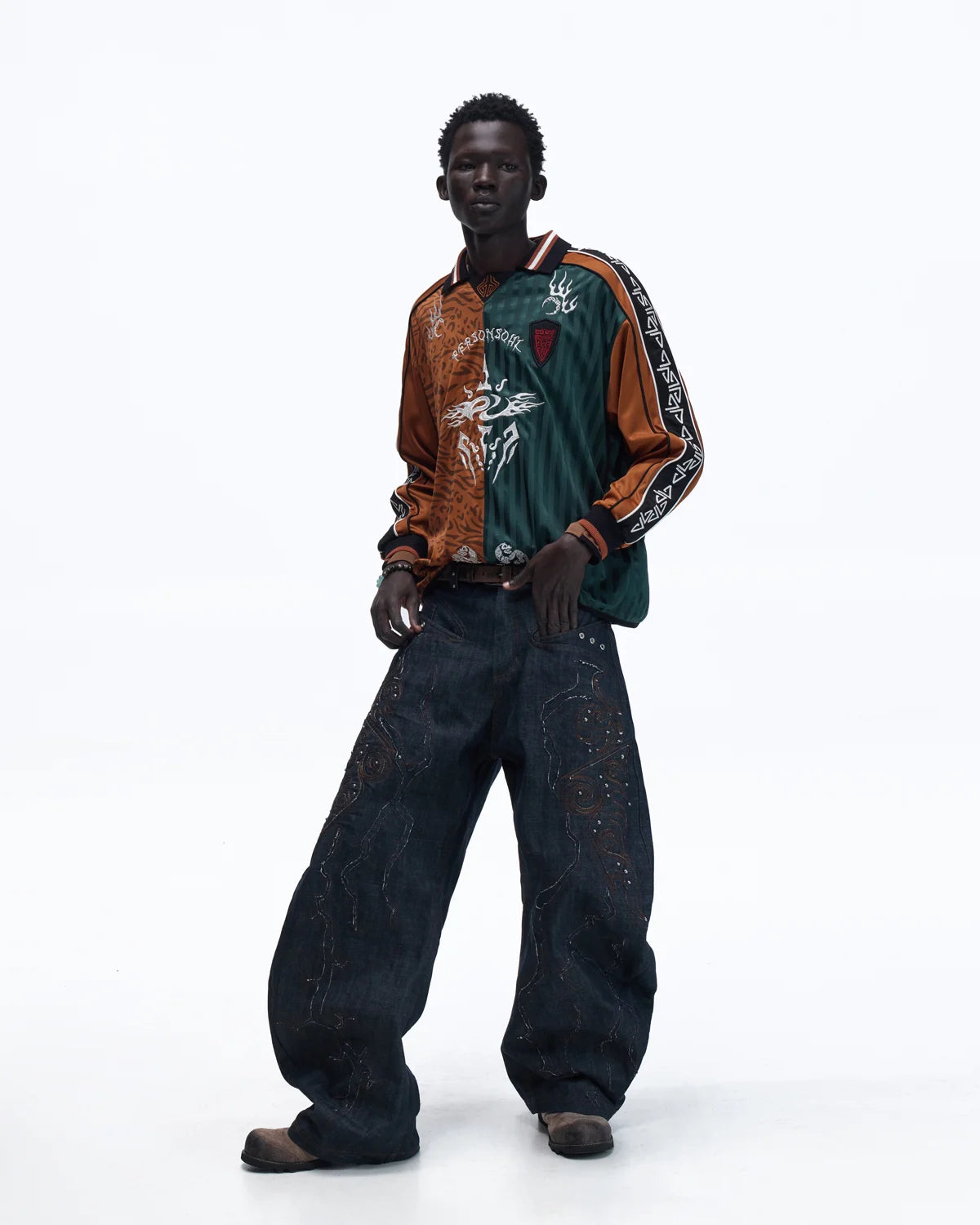Personsoul Tribal-Animal Print Patchwork Shirt