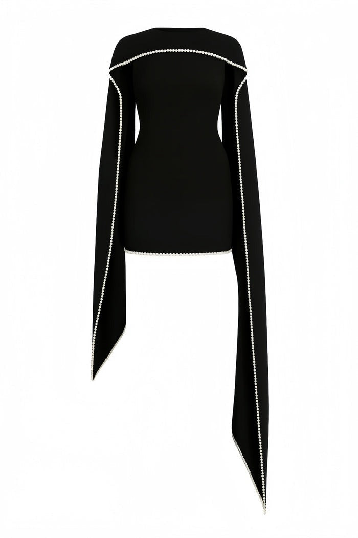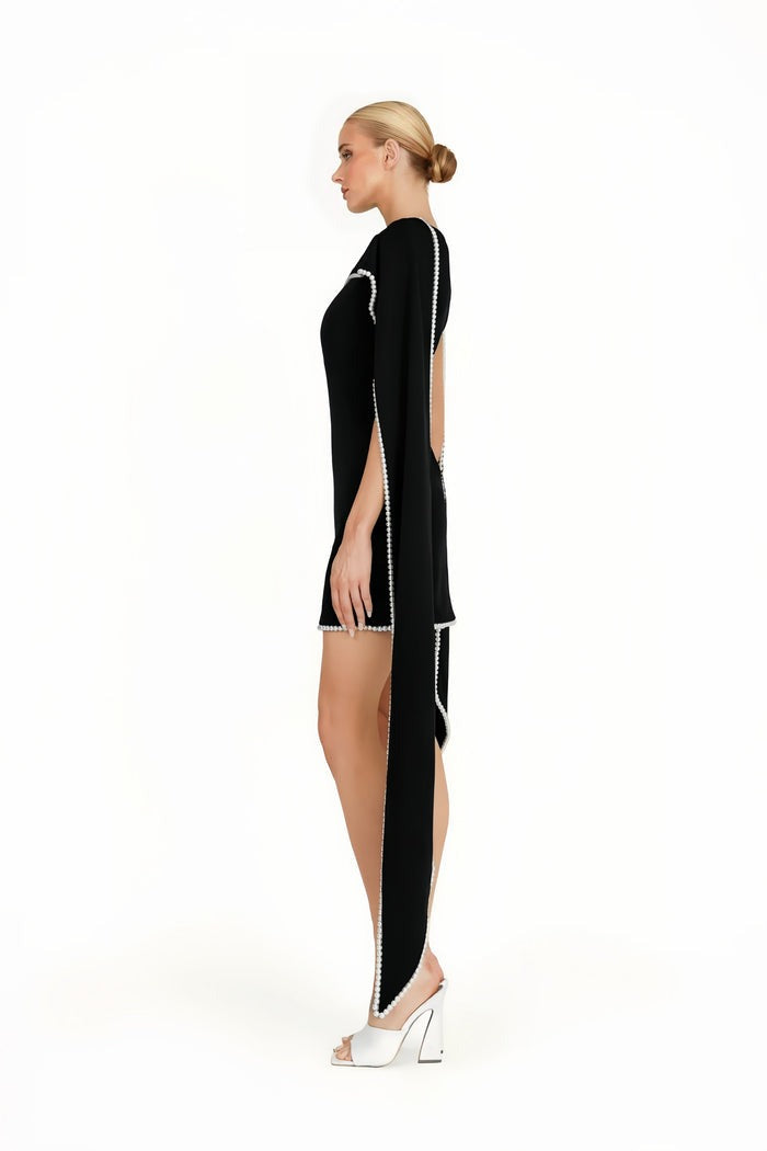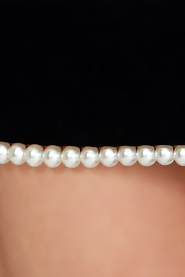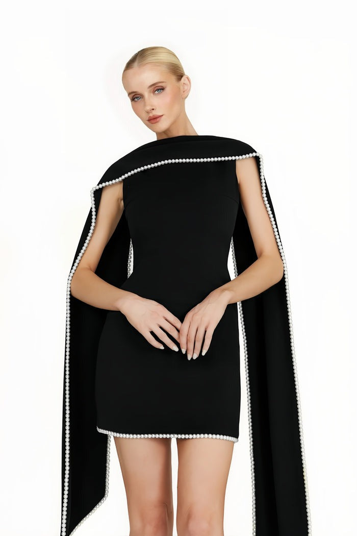 Piroska Black Sleeveless Pearl Trim Mini Dress