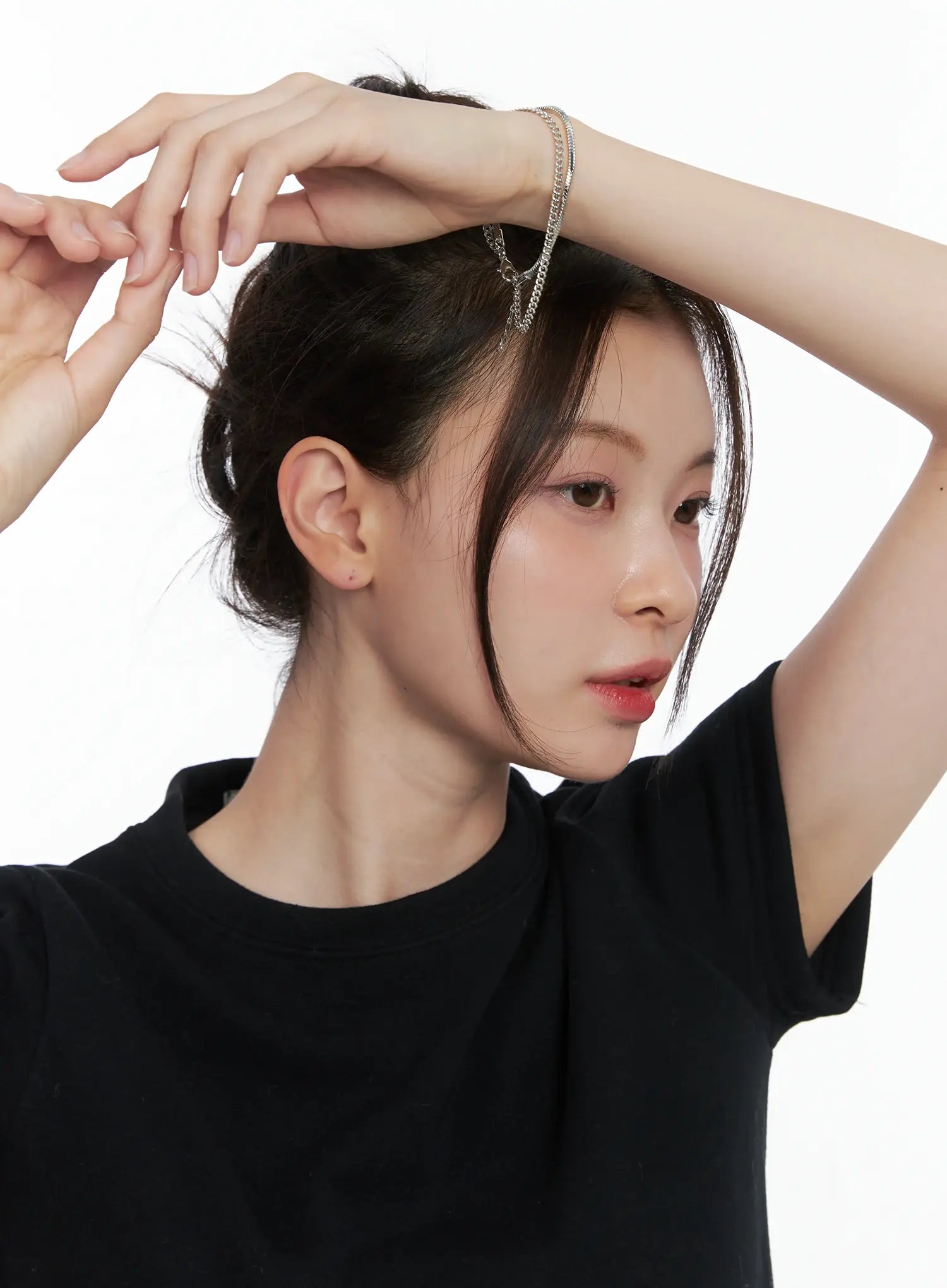 • Model is wearing size One Size and the color Silver.