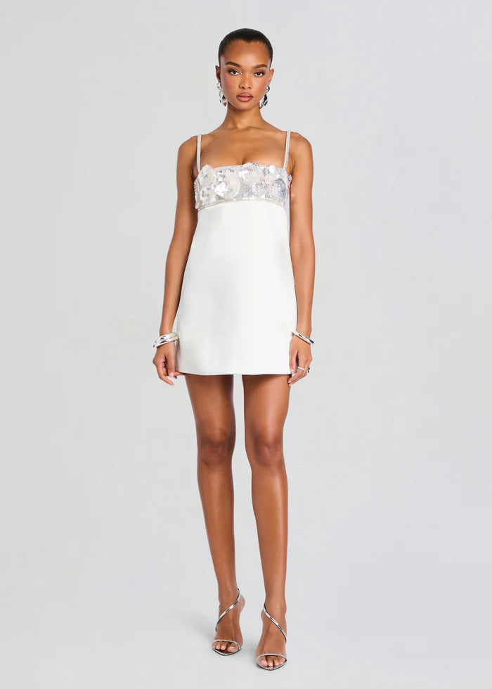 The Starlit Mini Dress showcases a sleek mini shift silhouettefor a chic, eye-catching look. Perfect for cocktail parties and stylish evenings out, it includes an invisible back zipper for a seamless fit.