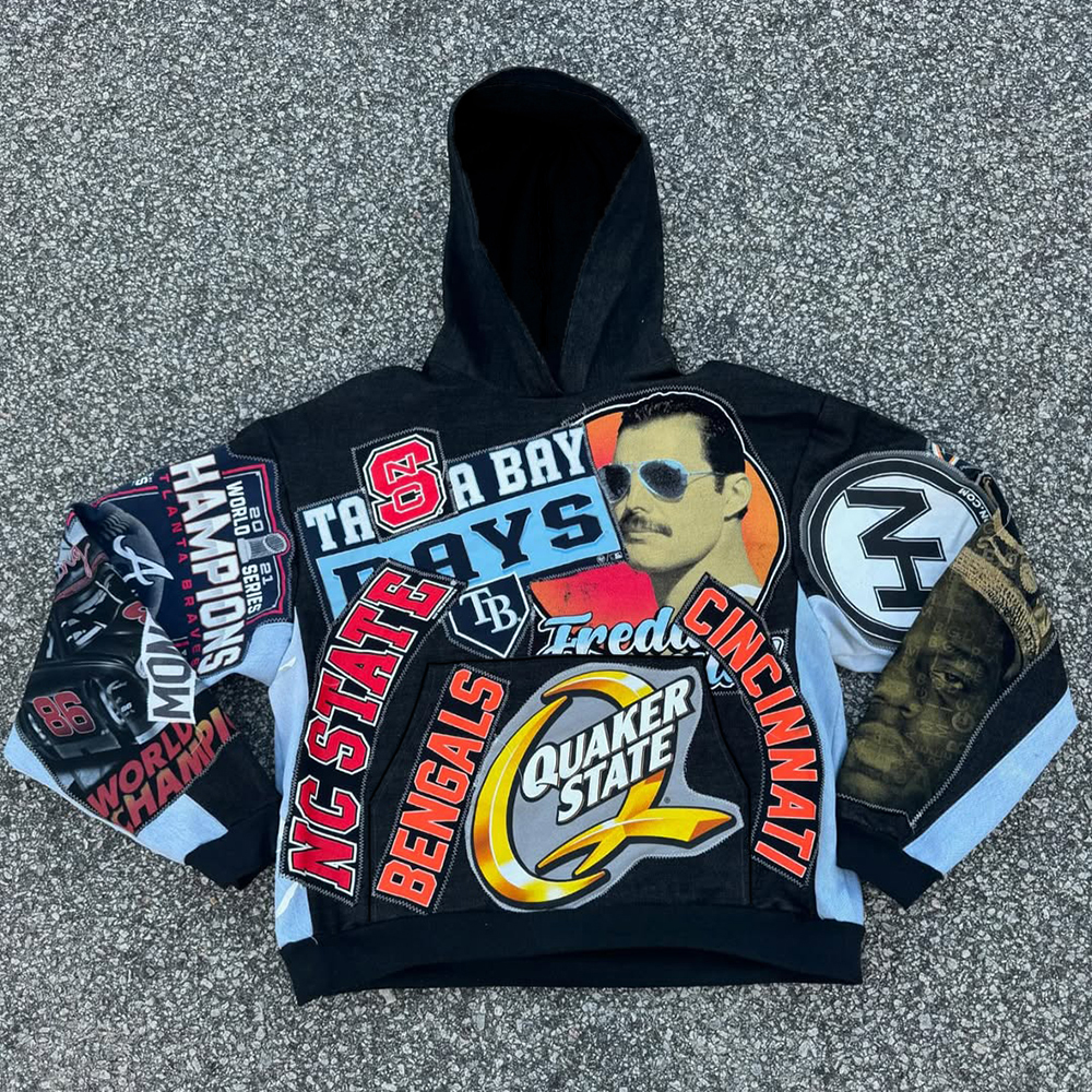 Stylish No.1 Multi-element Print Long Sleeve Hoodies