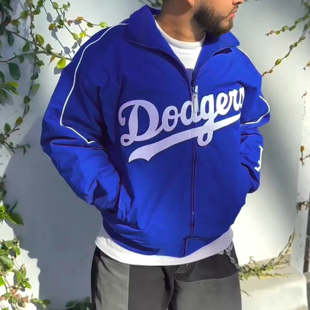 Classic Letter Logo Print Long Sleeve Baseball Jacket